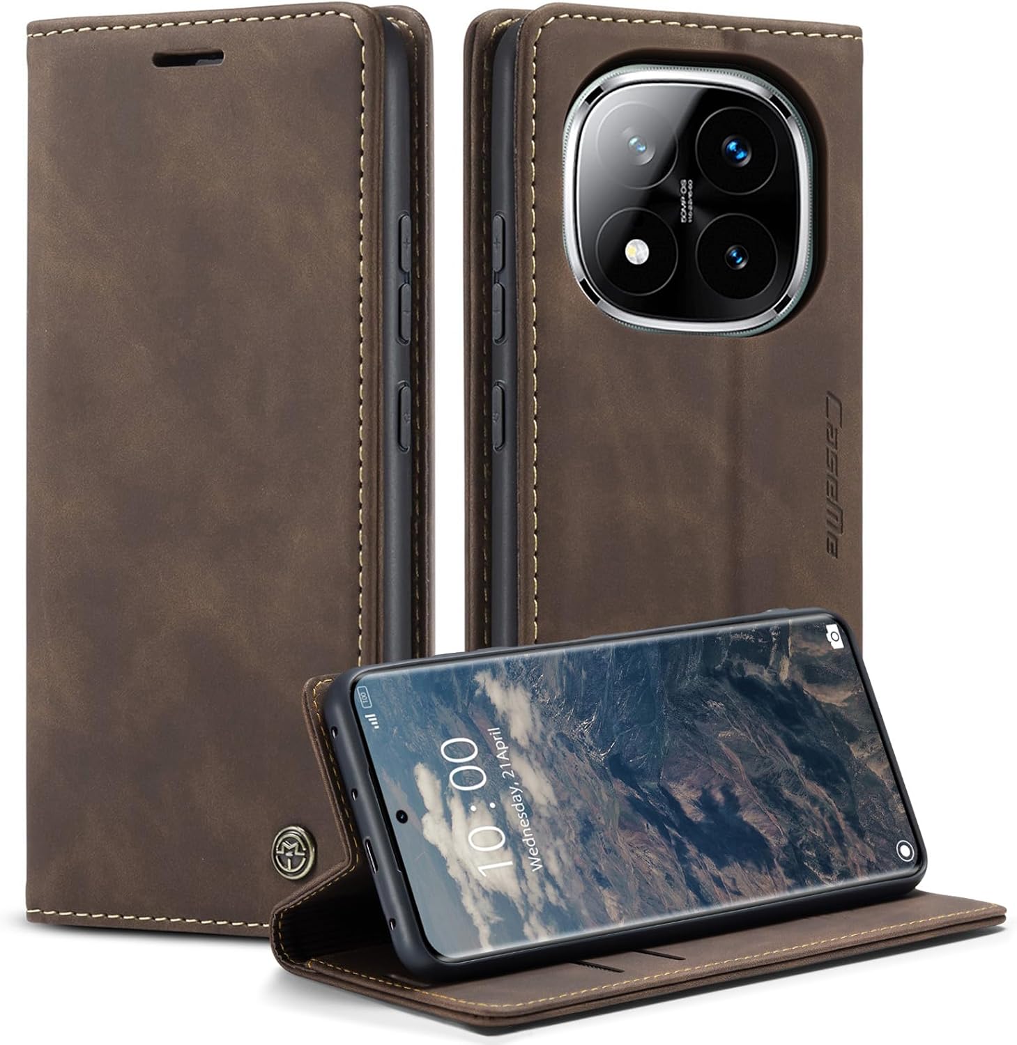 Monweicz Handyhülle für Xiaomi Poco X7 5G – Premium Flip-Case mit Kartenfach, Magnetverschluss und Standfunktion (Kaffee)