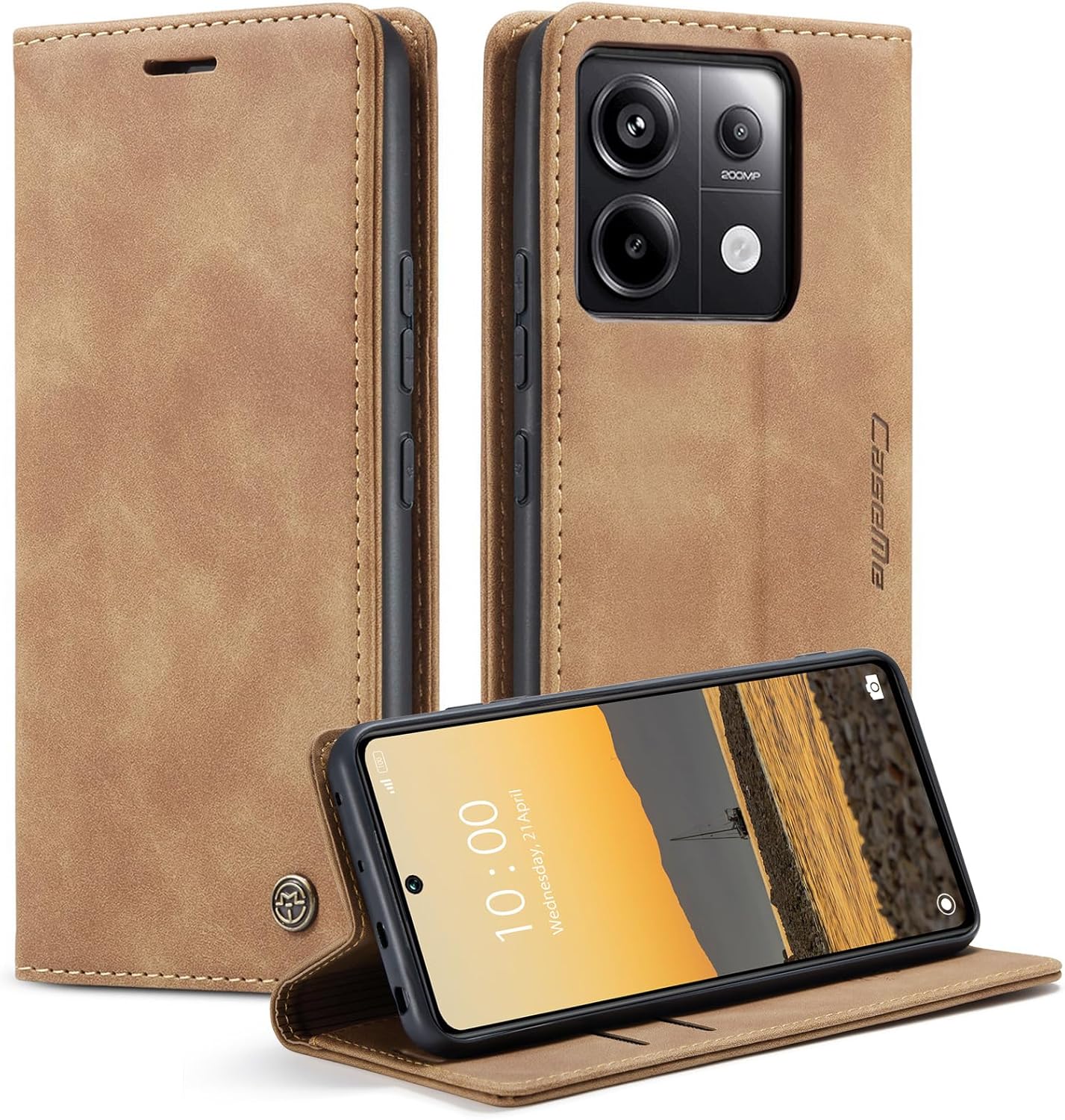 Monweicz Handyhülle für Xiaomi Redmi Note 13 Pro 5G – Premium Leder-Flipcase mit Magnetverschluss, Kartenfach & Standfunktion (braun)