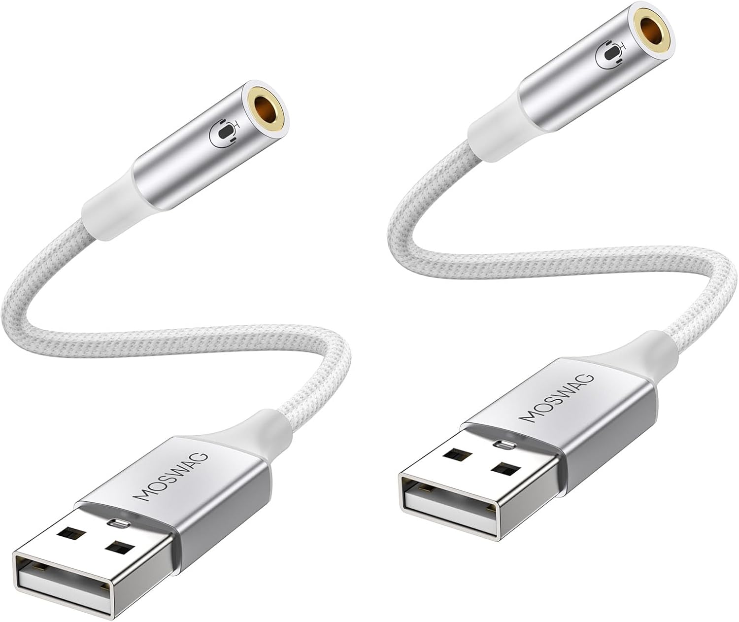 MOSWAG USB-zu-3,5-mm-Klinke-Audioadapter (2er-Set) mit Mikrofon-Anschluss für PC, PS4/PS5 & mehr