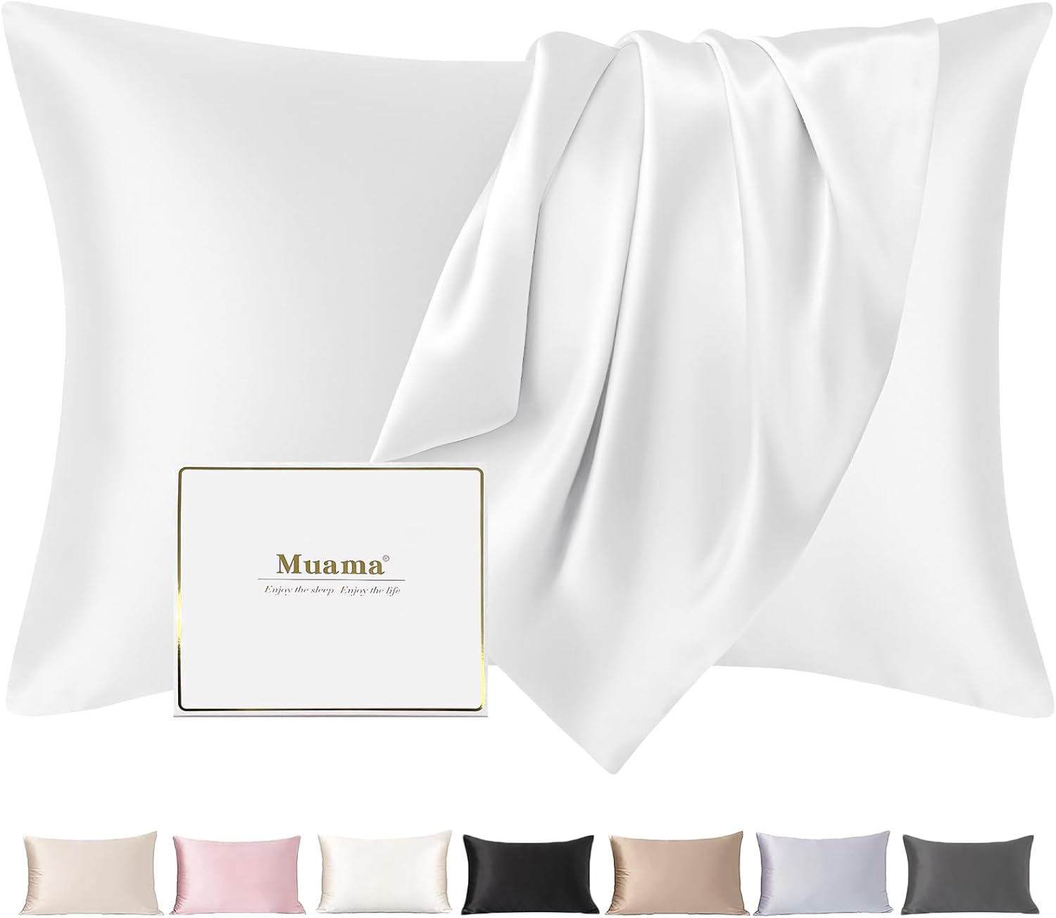 Muama Seidenkissenbezug 40x60 cm – Kissenhülle aus Seide mit verstecktem Reißverschluss (1 Stück), weiß