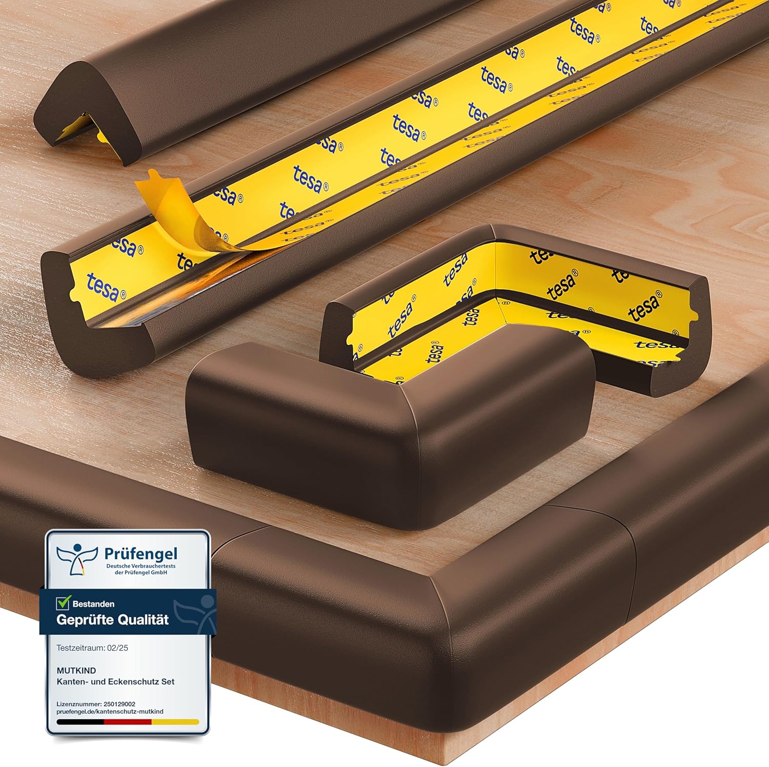MUTKIND Kantenschutz Baby (Braun) – 6 Meter + 10x Eckenschutz, selbstklebend mit TESA-Kleber
