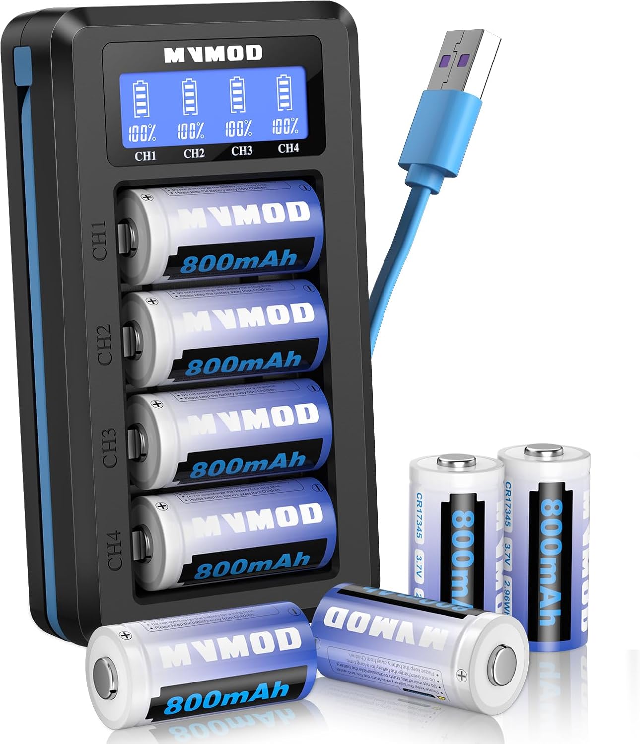 MVMOD CR123A wiederaufladbare Batterien 8er-Set (3,7V) mit Ladegerät für Arlo & Geräte