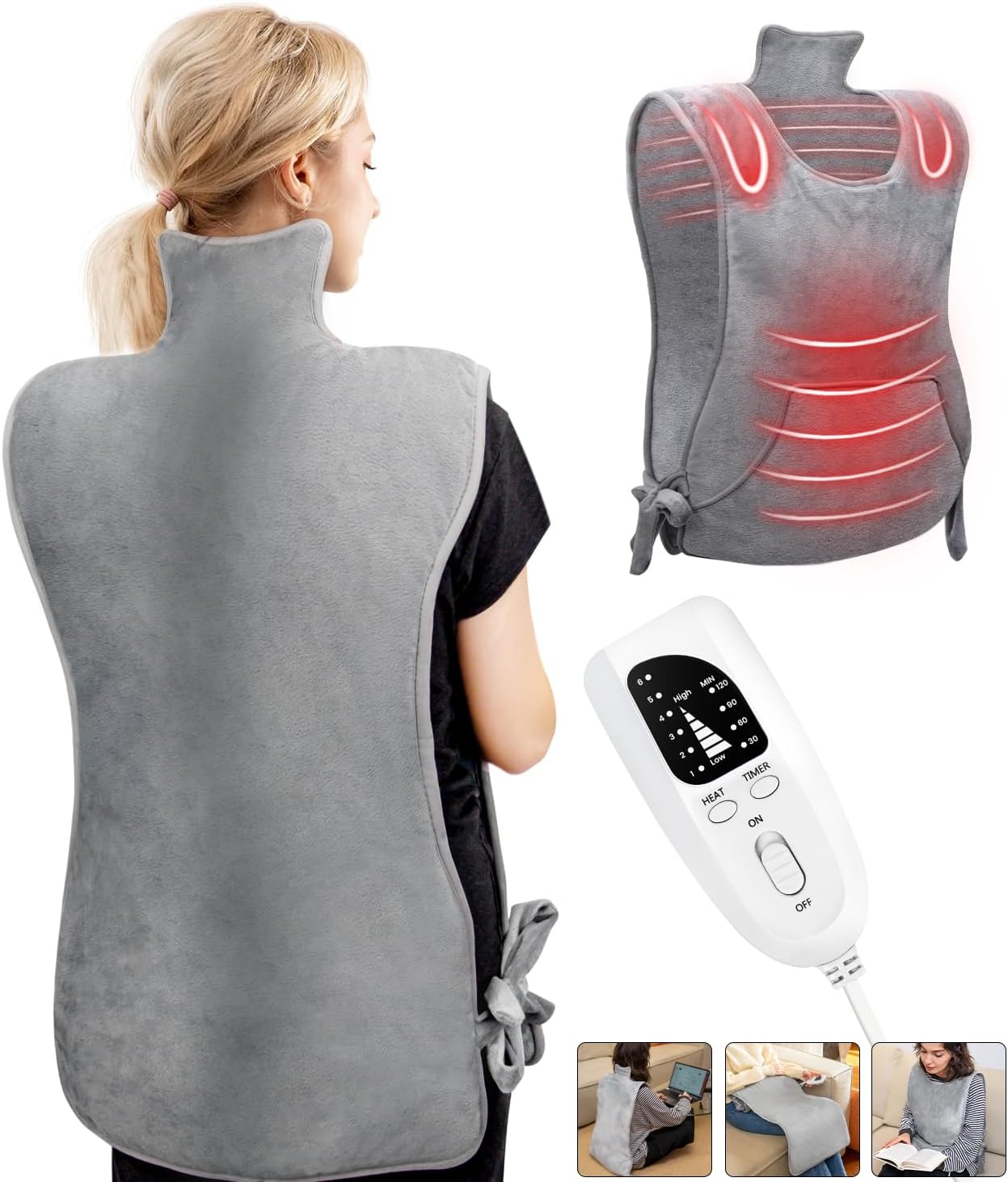 Nalezuns Heizkissen für Rücken, Schulter & Nacken mit Front- und Rückheizung, 6 Heizstufen, Auto-Off Timer
