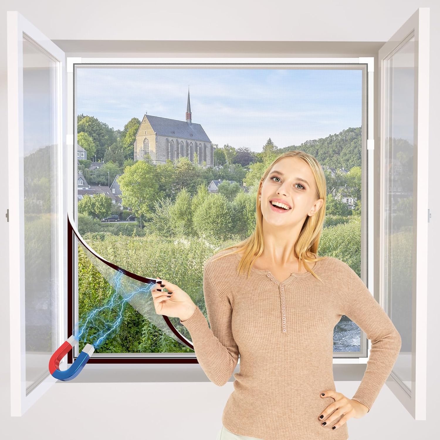 NeatiEase DIY Magnet-Fensterschutz Insektenschutz (bis 100 x 130 cm) mit zuschneidbarem Fliegengitter