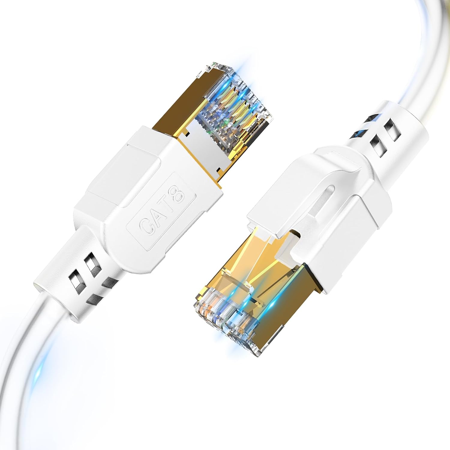 Nebite Cat 8 LAN-Kabel 5 m (40 Gbps, 2000 MHz) F/FTP – weiß