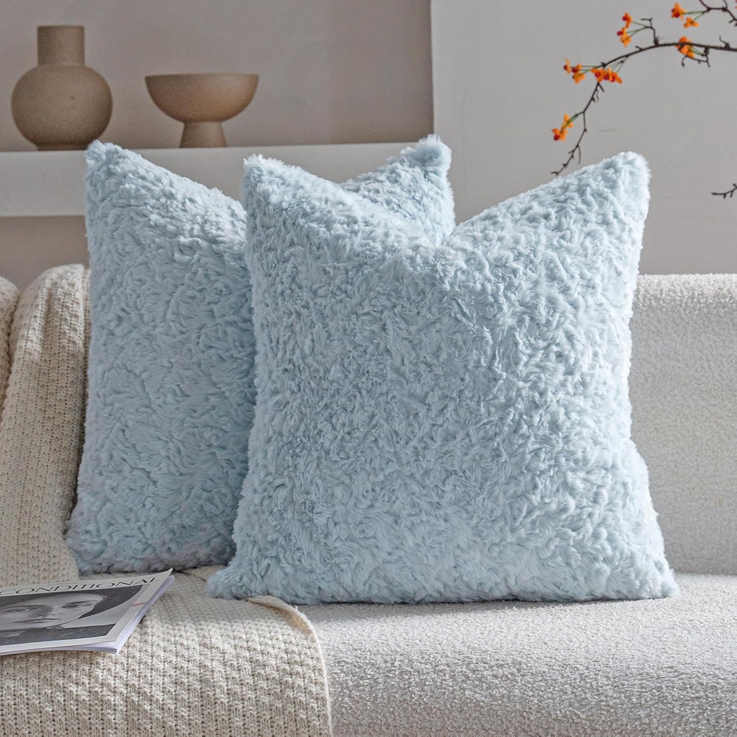Neelvin 2er-Set Kissenbezüge aus Kunstfell, blau (60 x 60 cm)