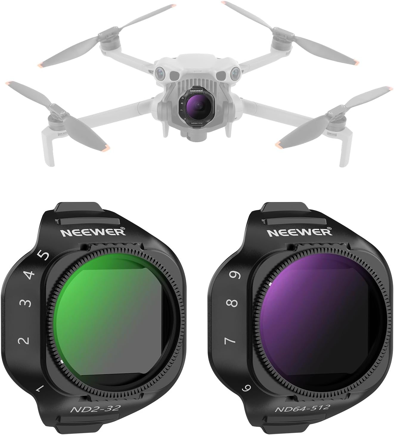 NEEWER Variabler ND Filter Set für DJI Mini 5 Pro (ND2-32 + ND64-512) im 2er-Pack – Snap-on, optisches Glas