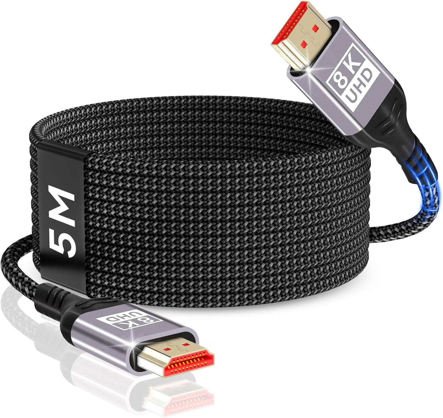 Nersligek HDMI 2.1 8K-Kabel 5 m (48 Gbps) für 8K@60Hz, 4K@120/144Hz, eARC, HDR10