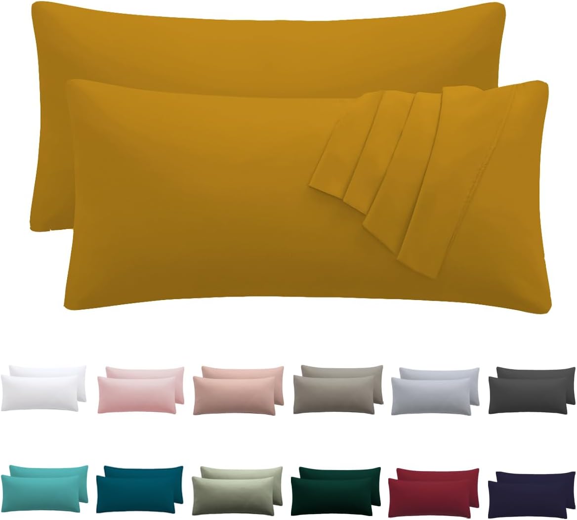 Nesture Kissenbezug 40 x 80 cm im 2er-Set (Kopfkissenbezug) – gelb, 100% Mikrofaser mit Reißverschluss