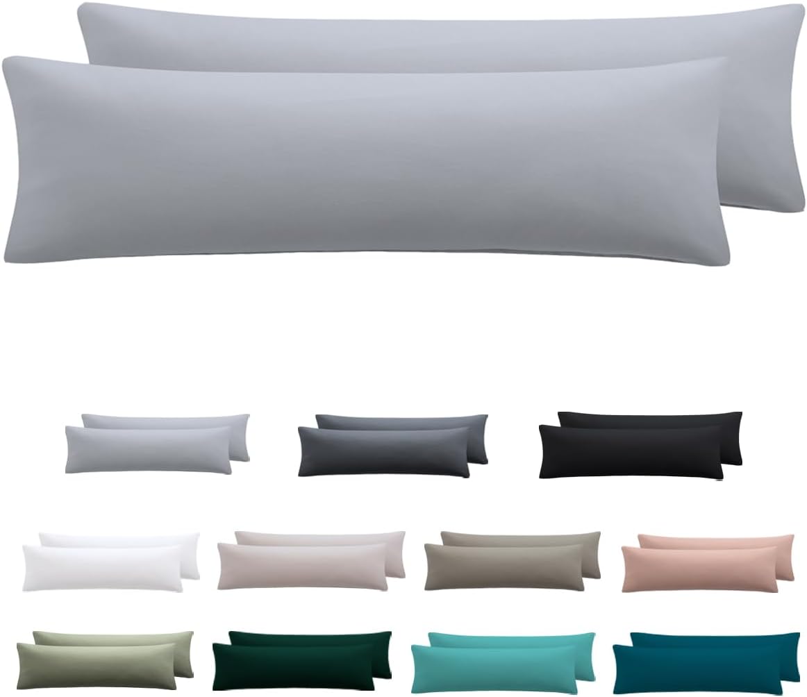 Nesture Seitenschläferkissen Bezug 40 x 145 cm (2er-Set) – Kissenbezug aus 100% Mikrofaser in Grau, mit Reißverschluss