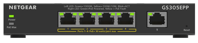 - NETGEAR GS305P PoE+ Gigabit-Switch mit 5 Ports (4 PoE+), Desktop- oder Wandmontage