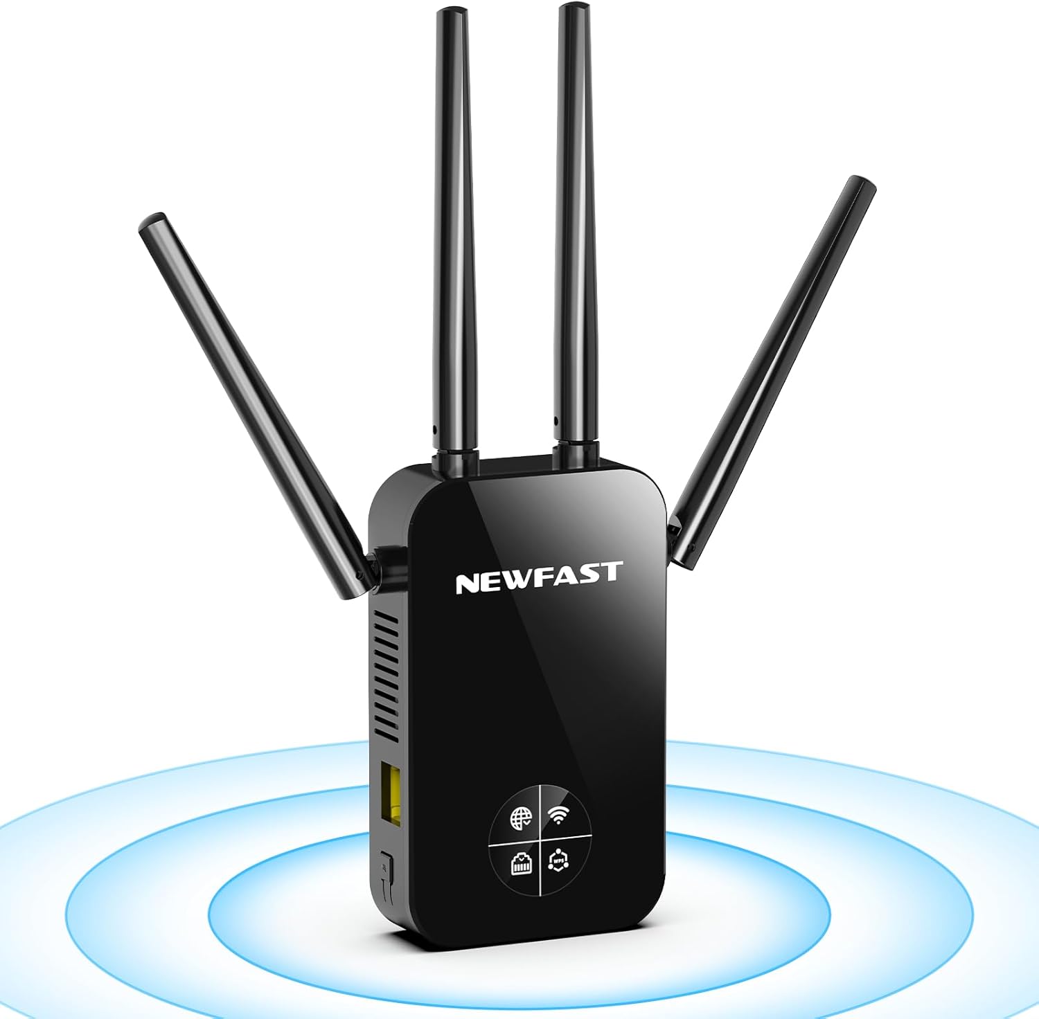 - NEWFAST WLAN Repeater 1200 Mbit/s Dualband – WiFi-Extender mit 4 drehbaren Antennen, Ethernet-Port & MU-MIMO