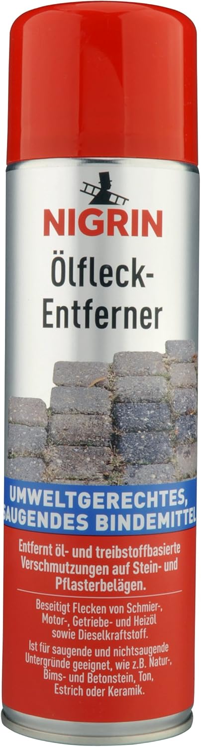 Der NIGRIN Ölfleck-Entferner ist ein umweltgerechter Fleckentferner, der öl- und treibstoffbasierte Verschmutzungen adressiert. Mit einem Inhalt von 500 ml richtet er sich an Haushalte, Werkstätten oder Fahrzeuge, die regelmäßig mit öligen Rückständen konfrontiert sind.