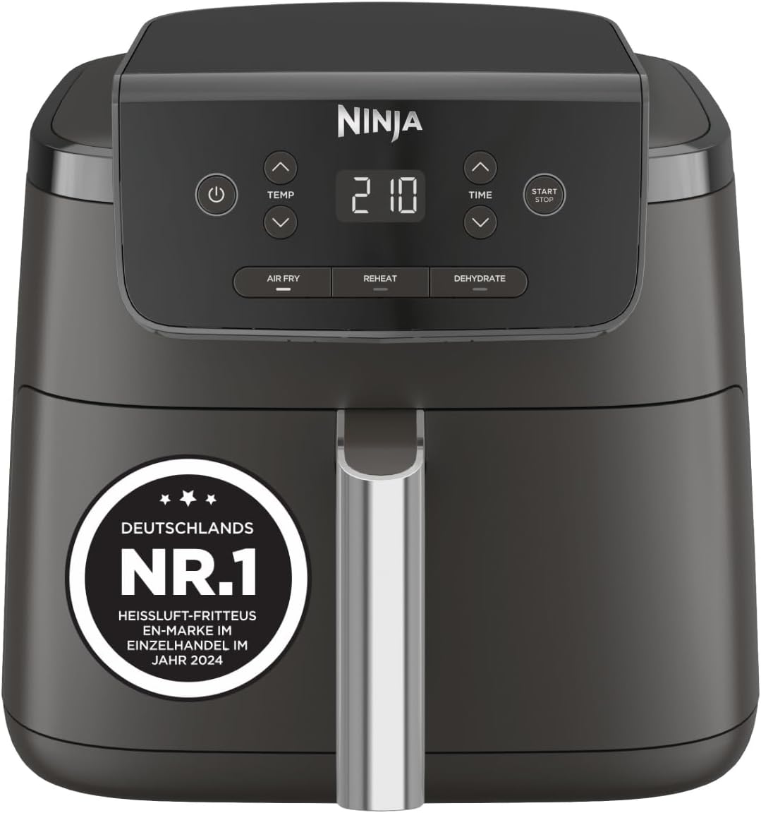 Lohnt es sich? Kaufen lohnt sich, wenn du eine kompakte Ninja Heißluftfritteuse für 1–2 Portionen suchst und die Kombination aus Air Fry, Aufwärmen und Trocknen wirklich nutzen willst. Besonders attraktiv ist sie, wenn du den Schritt weg von Öl gehen möchtest und auf Temperatur bis 210 °C sowie AirCrisp setzt.