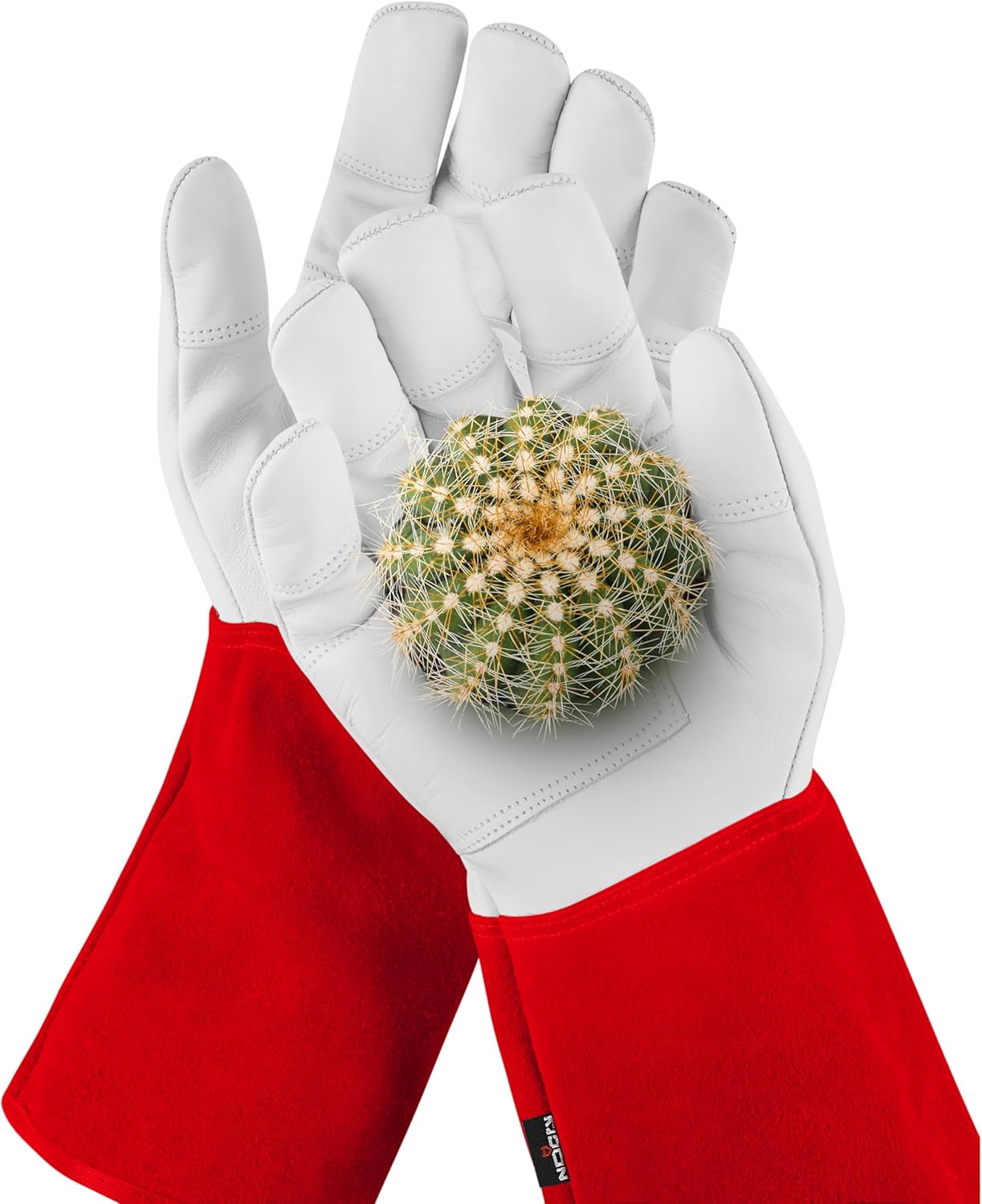 NoCry Leder-Gartenhandschuhe für Damen & Herren – dornenfeste Handschuhe mit extra langer Stulpe, Rot, Größe M