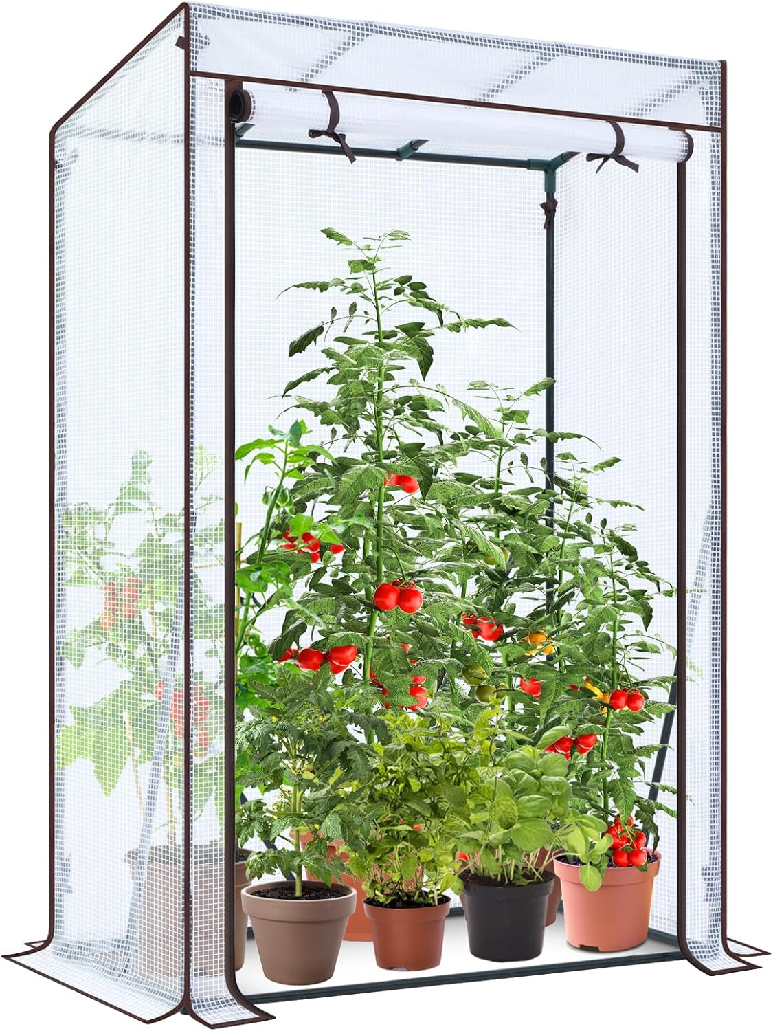 Lüftung ist beim Tomatenhaus ebenfalls vorgesehen: Es gibt eine Tür mit Reißverschluss sowie zwei Mesh-Fenster, damit du Luftaustausch regulieren kannst. Das kann helfen, Kondenswasser nicht komplett „stehen zu lassen“ und die Pflanzen mit frischer Luft zu versorgen.