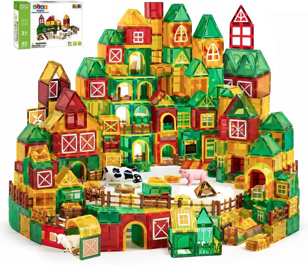 Olvy Magnetische Bausteine Montessori Spielzeug (80 magnetische Tiles) – Magnetkonstruktionsset für Kinder ab 3 Jahren (Farm)