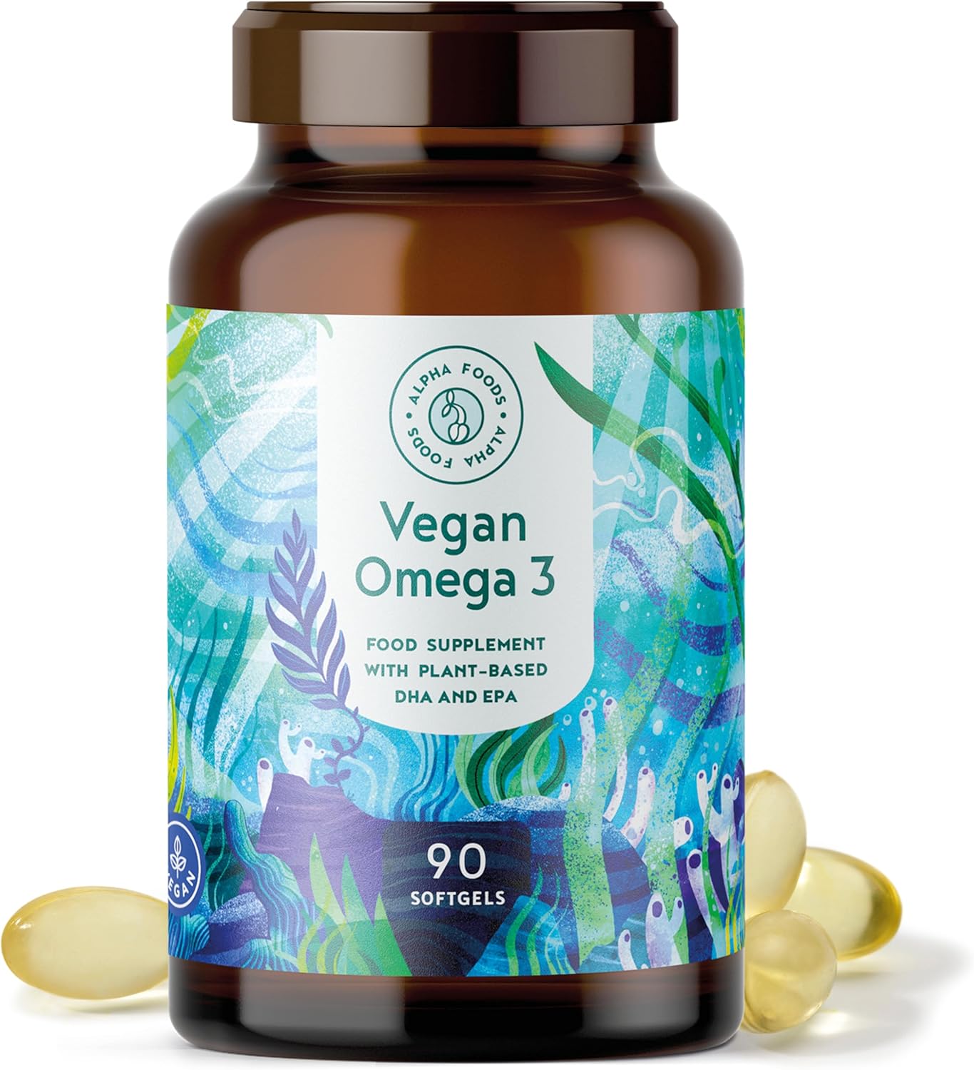 Omega 3 Vegan Hochdosiert aus Algenöl – Alpha Foods, 90Softgels