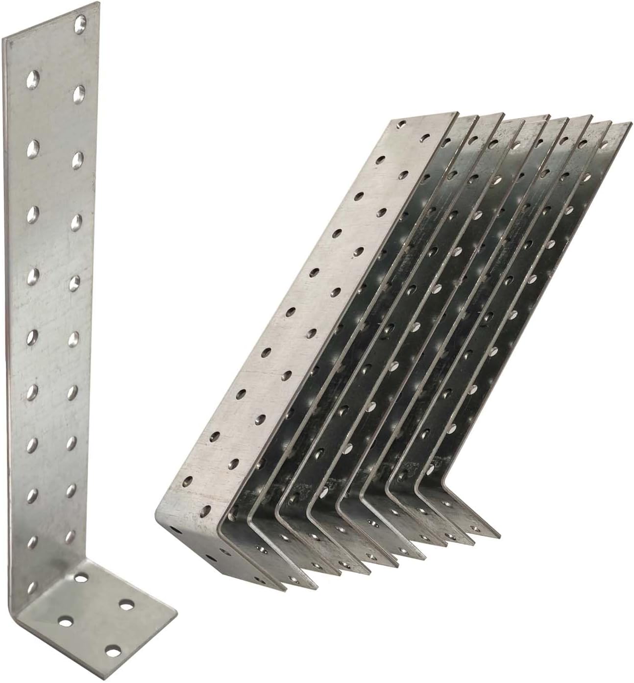 Die Packung enthält 10 x Flachstahlanker. Laut Angabe liegt die Größe bei 200 x 40 x 40 mm und die Dicke beträgt 2 mm. Die Halterungen haben vorgebohrte Löcher: insgesamt 24 Löcher mit einem Durchmesser von Ø 5 mm pro Anker. Wichtig: Schrauben sind nicht im Lieferumfang enthalten – hier brauchst du also passende Befestigungselemente für deine Montage.