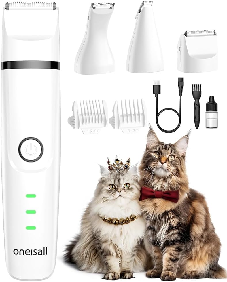 oneisall 3-in-1 Schermaschine für Katzen & Hunde – leiser Katzentrimmer mit 3 Aufsätzen