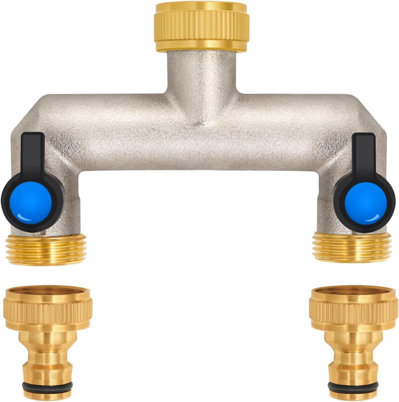 Zusätzlich werden laut Lieferung zwei Messing-Adapter mitgeliefert, um auf 1/2"-Anschlüsse an Wasserleitungen/Schläuchen zu gehen. Damit ist der Verteiler vor allem dann gut passend, wenn du auf der „Schlauchseite“ auf 1/2" umstellen möchtest.