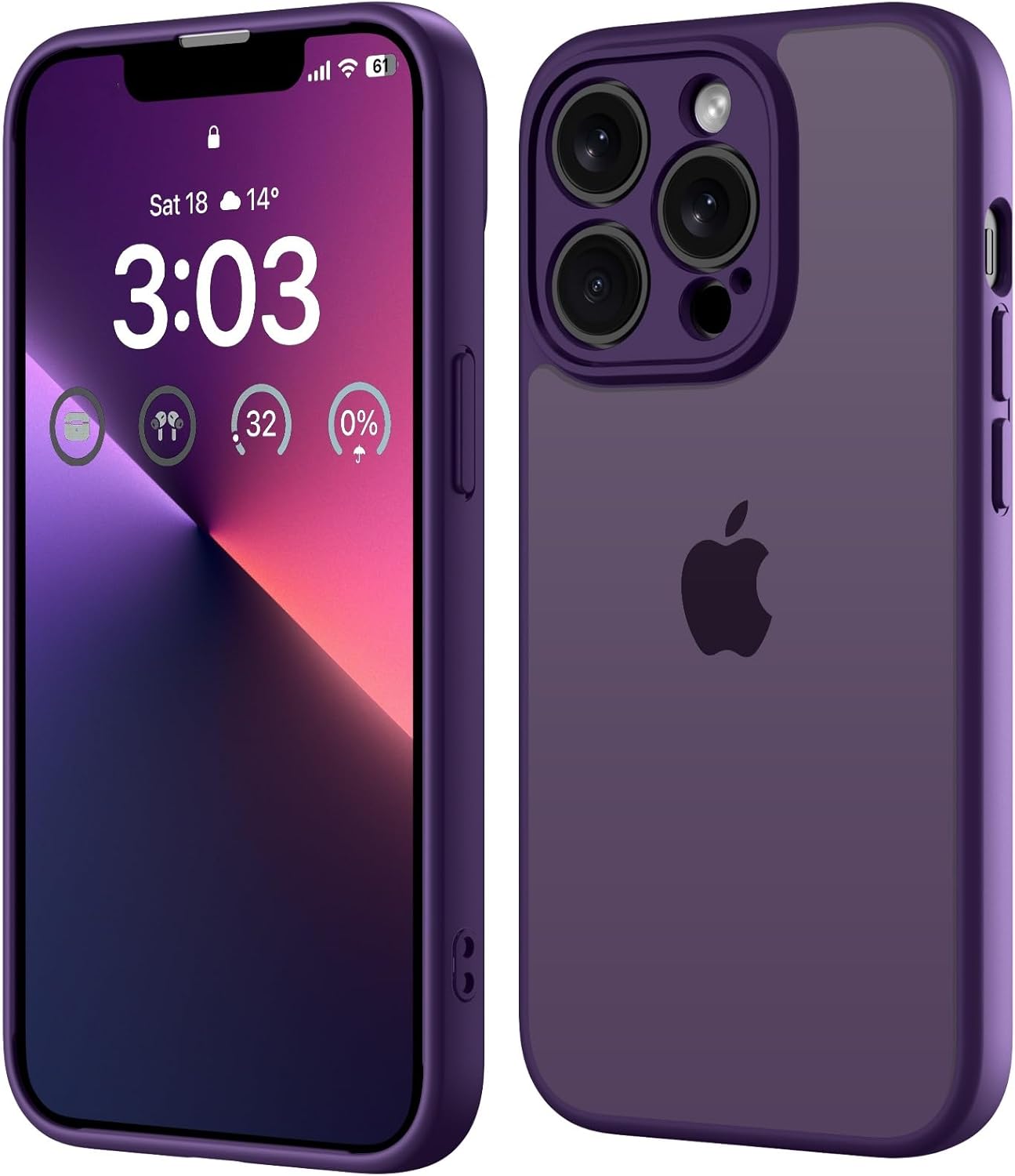 ORDA Schutzhülle für iPhone 13 Pro (6,1 Zoll) – stoßfest mit Kameraschutz und matter, durchscheinender Rückseite (dunkelviolett)