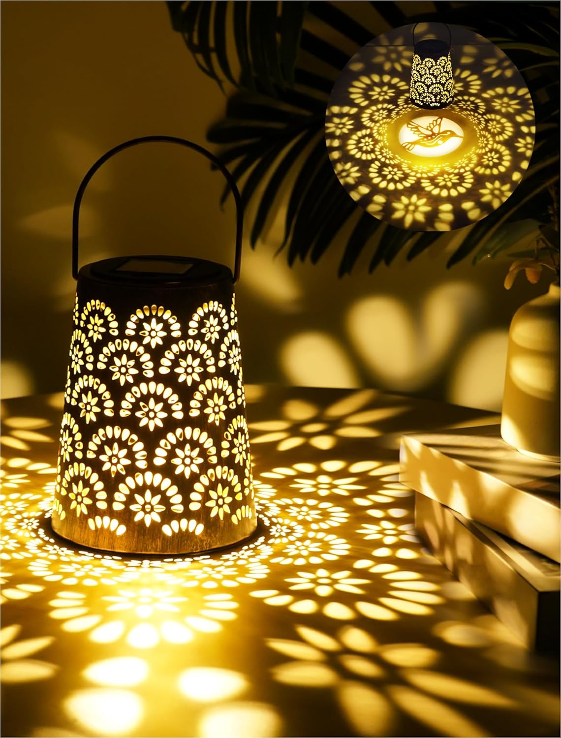 OUILA bietet Solarlampen für den Außenbereich, die sich vor allem über ihr Dekor und den einfachen Solar-Betrieb definieren. Die Gartenleuchte ist wetterfest ausgelegt (IP65), besteht laut Beschreibung aus Metall und ist mit einem vintage-inspirierten Motiv umgesetzt: floralem Lasercut/Perforationsdesign plus einem dekorativen Vogelmotiv unten an der Laterne. Wenn das Licht angeht, soll das Muster als Projektion am Boden sichtbar werden – gerade dann wirkt die Leuchte im Alltag wie mehr als nur „eine Lampe“.