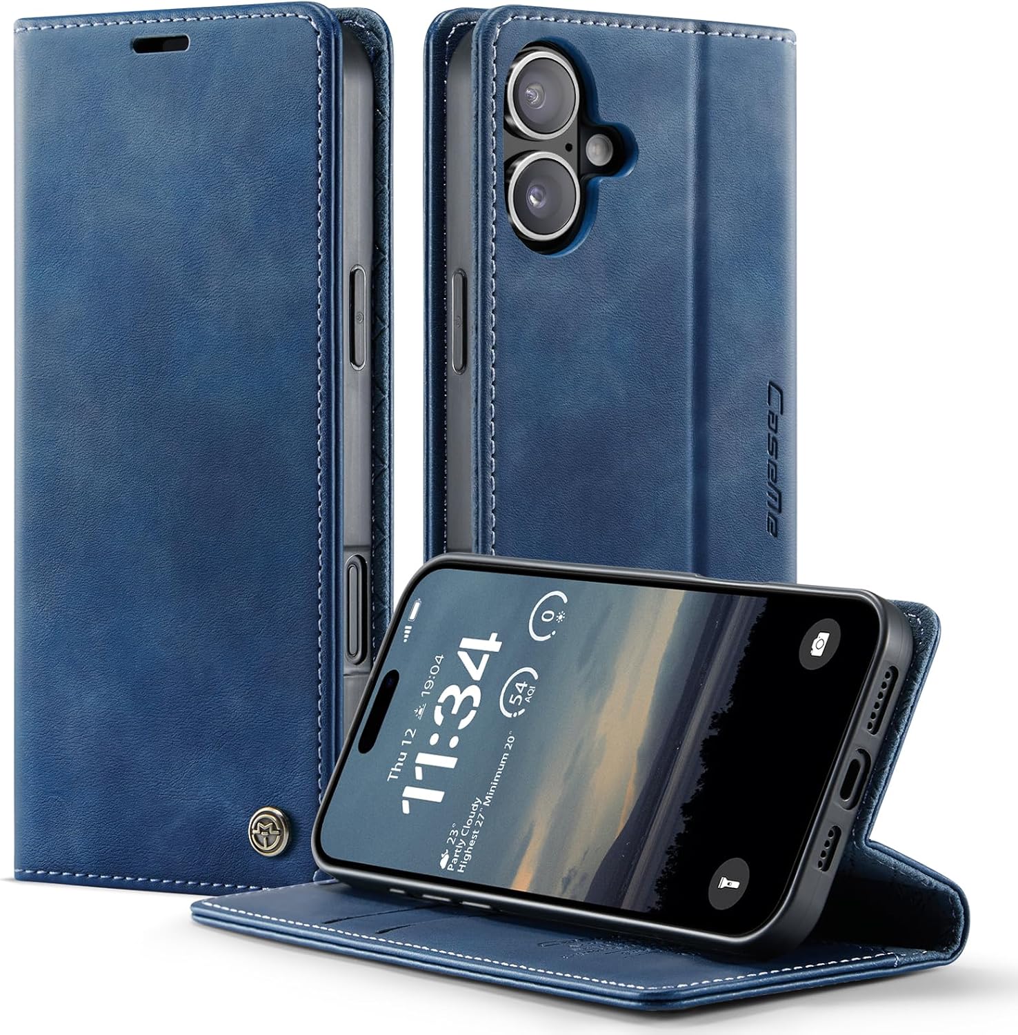 owlhold für iPhone 17 Klapphülle aus PU-Leder mit RFID-Schutz, Kartenfach und Standfunktion (blau)
