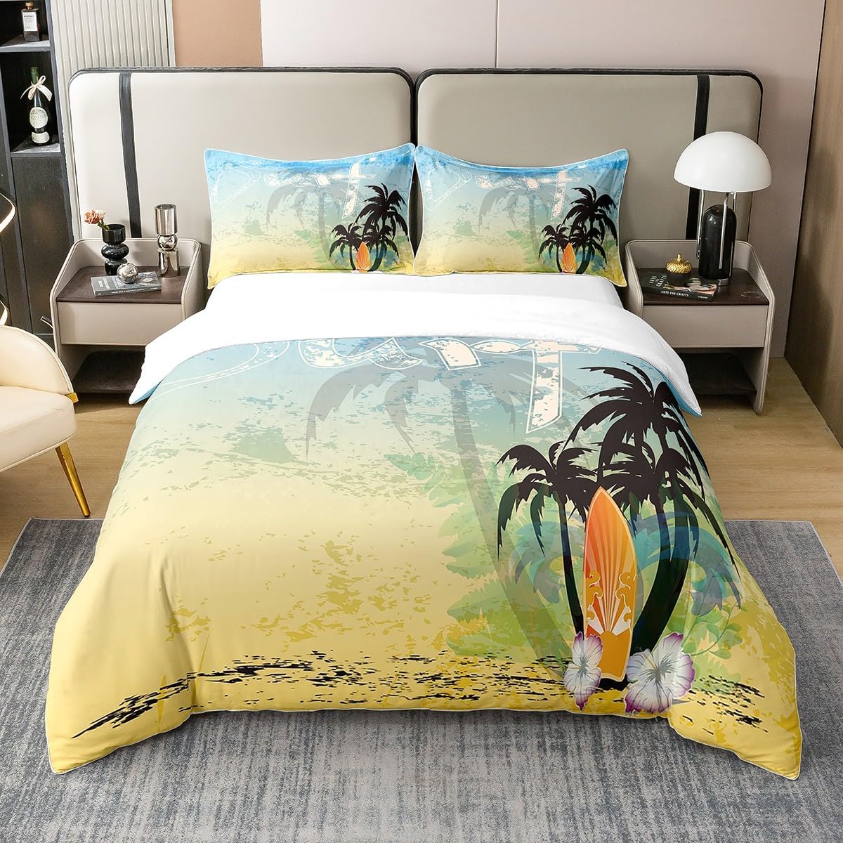 Das Set ist für eine bestimmte Bettgröße ausgelegt (155x220 cm) und enthält laut Beschreibung keinen Bettdecke-/Tröster-Einsatz, sondern nur den Bezug. Das ist wichtig, weil man sonst schnell die falsche Erwartung hat. Für ein Sommer-Urlaubs-Thema mit tropischem Hawaii-/Palmen-Look ist es außerdem optisch gedacht: lebendige Farbwirkung durch reaktive Färbung, ohne „Fade Issue“ (so wird es in der Beschreibung formuliert).
