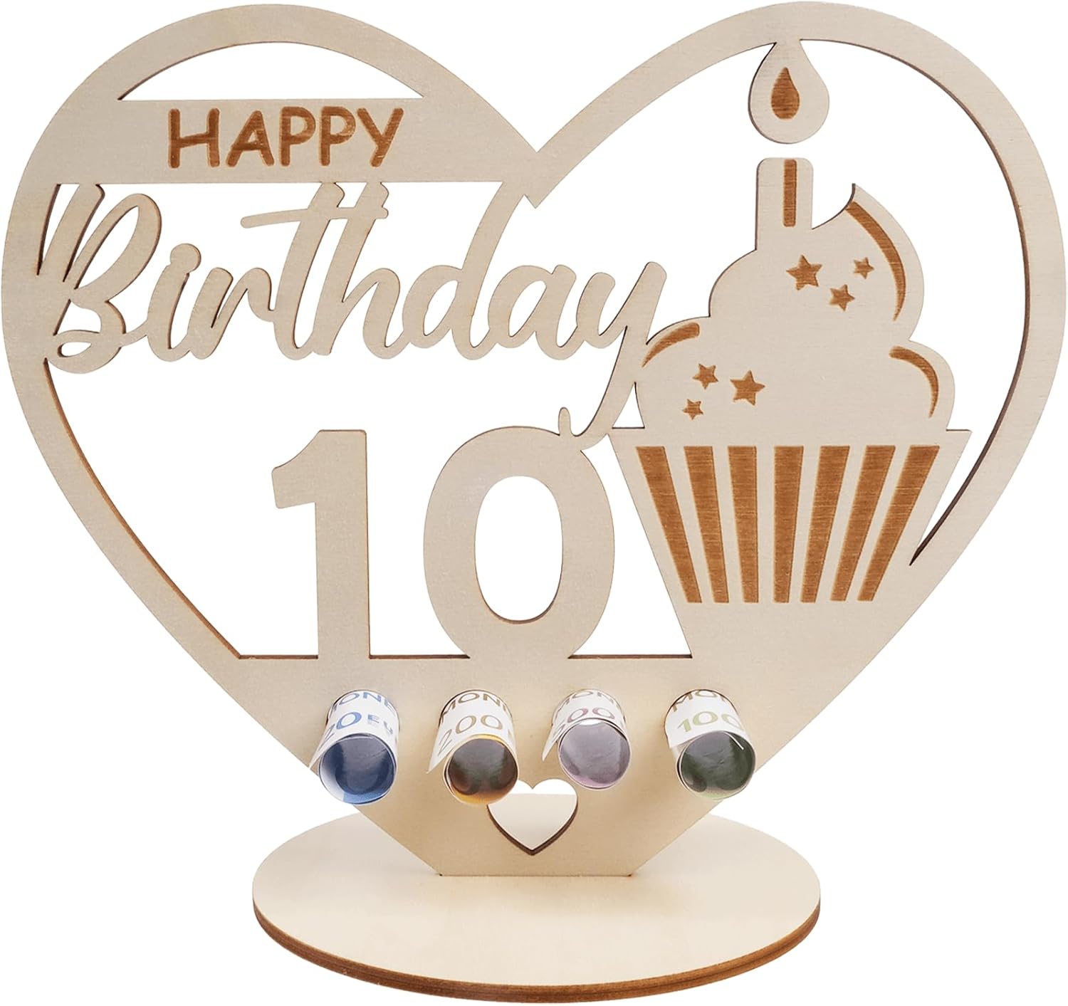 Packra Geldgeschenk Geburtstag in Herzform – Holz-Schild & 10 Geldgeschenke inkl. „Happy Birthday“-Motiv