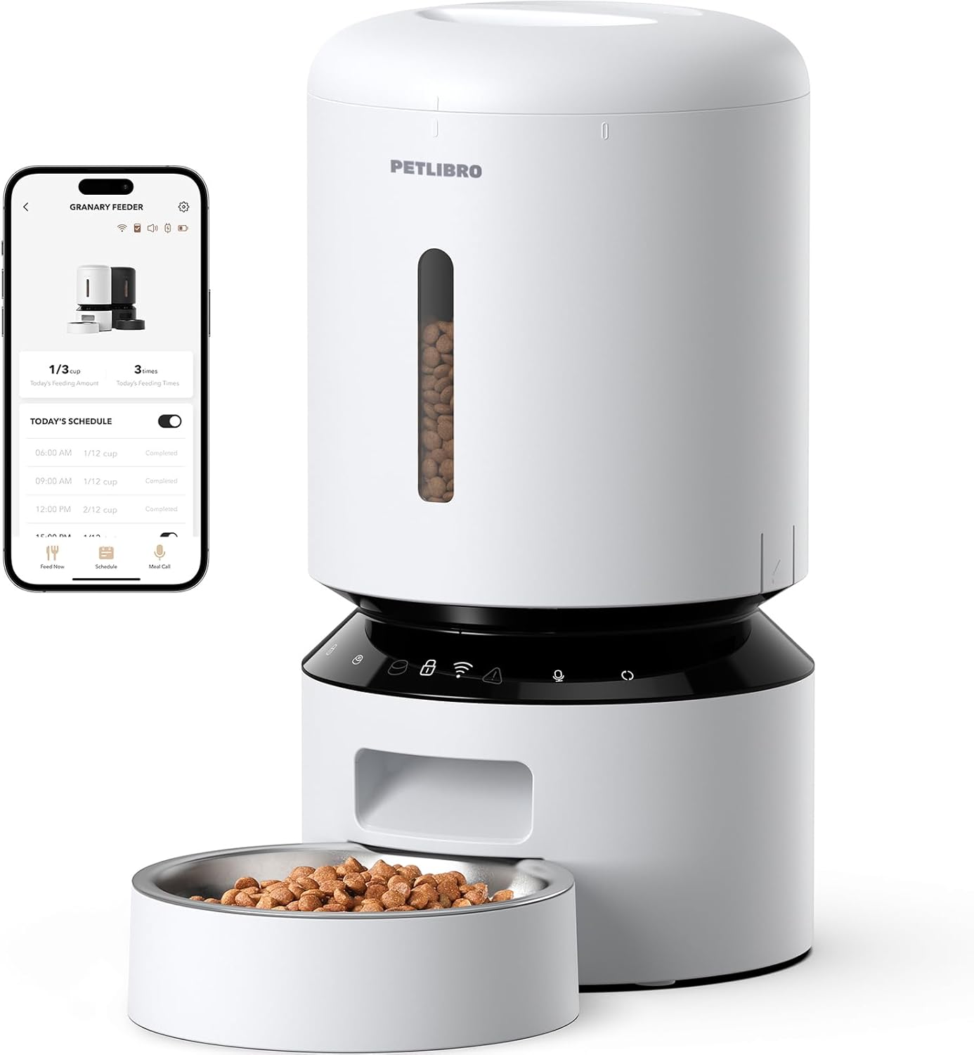 Der patentierte Rotor im Tankboden und der Drehverschlussdeckel verhindern, dass Haustiere an das Futter gelangen und zusätzliches Fressen provozieren. Zusätzlich sorgt ein integrierter Trockenmittelbeutel und ein Dichtungsstreifen dafür, dass das Trockenfutter länger frisch bleibt. Intelligente Anzeigen und Benachrichtigungen informieren dein Smartphone, wenn der Tank leer ist oder eine Blockade vorliegt. 🔔