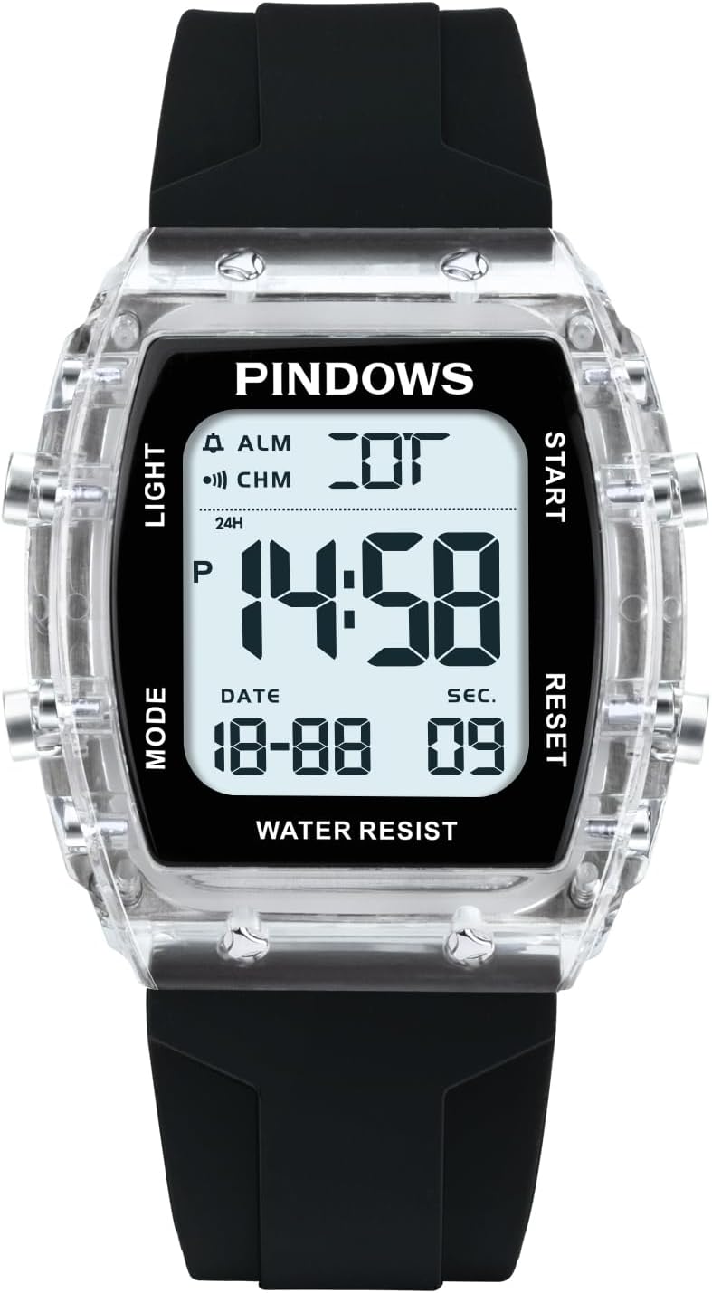 Sinnvoll ist die PINDOWS Digitale Sportuhr für dich, wenn du eine digitale Uhr willst, die auf gute Ablesbarkeit setzt (transparentes Gehäuse plus helle LED) und dir Funktionen wie Stoppuhr, Alarm/Countdown, Kalender und Dualzeit reichen. Gute Wahl ist sie auch, wenn du regelmäßig Sport machst, aber keine teuren Smartwatch-Features brauchst.