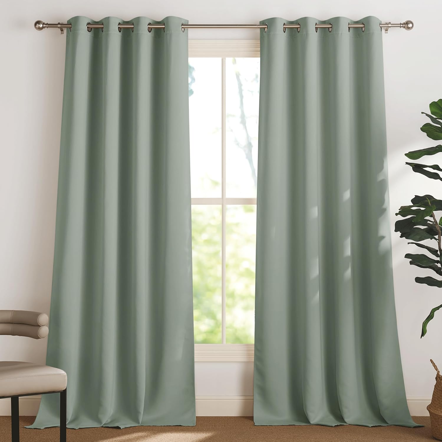 - KGORGE Salbeigrün Verdunklungsvorhänge mit Ösen für Kinderzimmer, 2er-Set (100 x 90 cm)