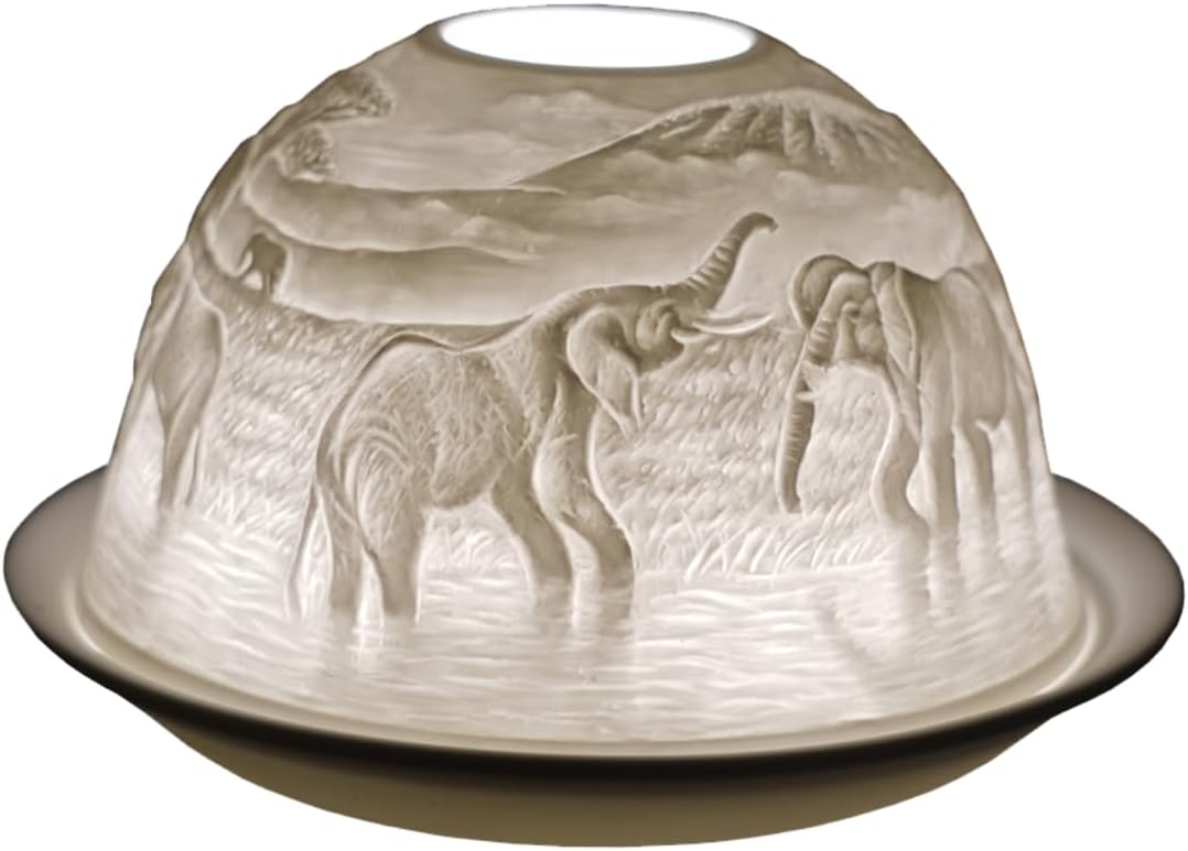 - Cello Porzellan-Teelichthalter „Kuppel“ mit Elefantenfamilien-3D-Projektion