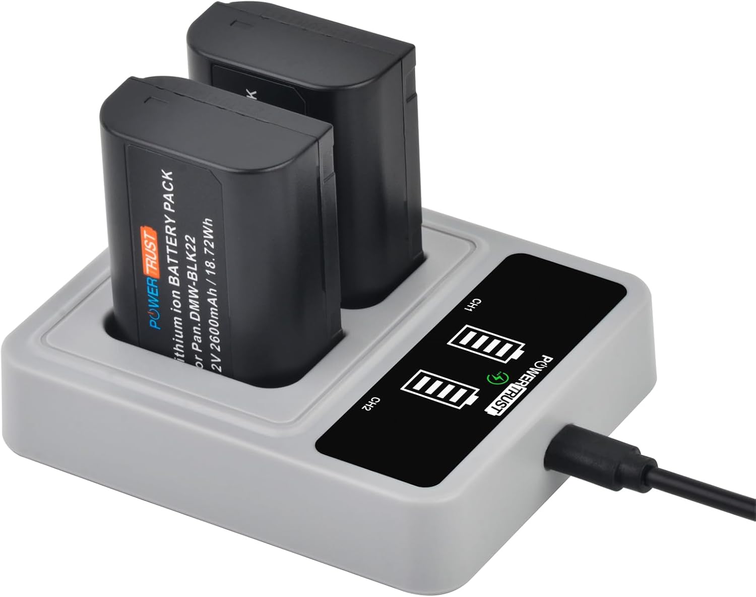 PowerTrust 2er-Set DMW-BLK22 Akku + PD-20-W Dual-USB-C-Ladegerät (für Panasonic Lumix S5 & GH5 Serie)