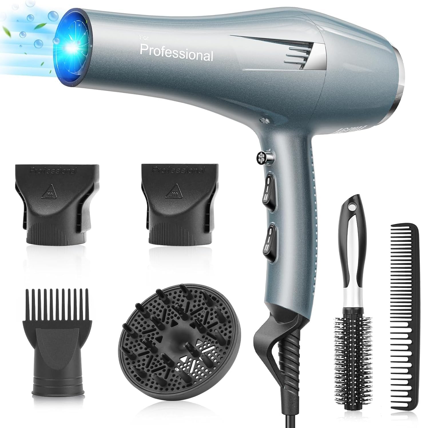 - Name: Profi Föhn Ionen Fön Haartrockner Hair Dryer Haarföhn mit 1 Diffusor 2 Stylingdüse, 3 Heiz und 2 Geschwindigkeitsstufen, 2.5 Meter langes Netzkabel, Starker Fön für Familie (blau)