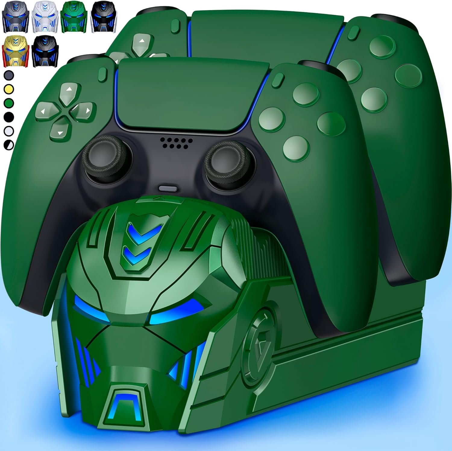 PS5 Controller Ladestation Zubehör mit Cooles Helm-/Masken-Design für 2-Controller-Laden (Grün)
