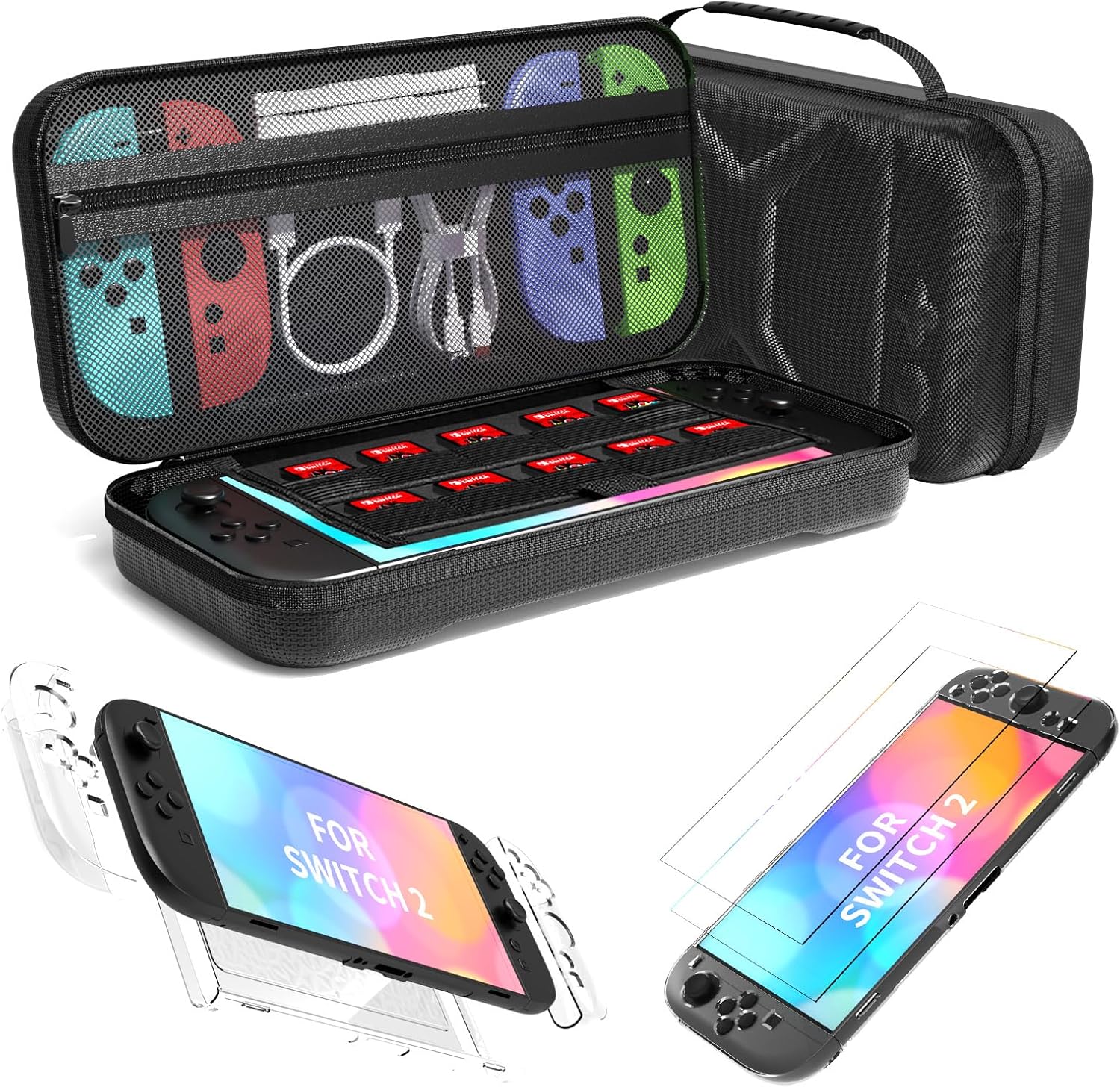 QUAGGY Tragetasche für Nintendo Switch 2 (2025) – 3-in-1 Zubehörset mit Schutzglas & Kartenfächern, schwarz