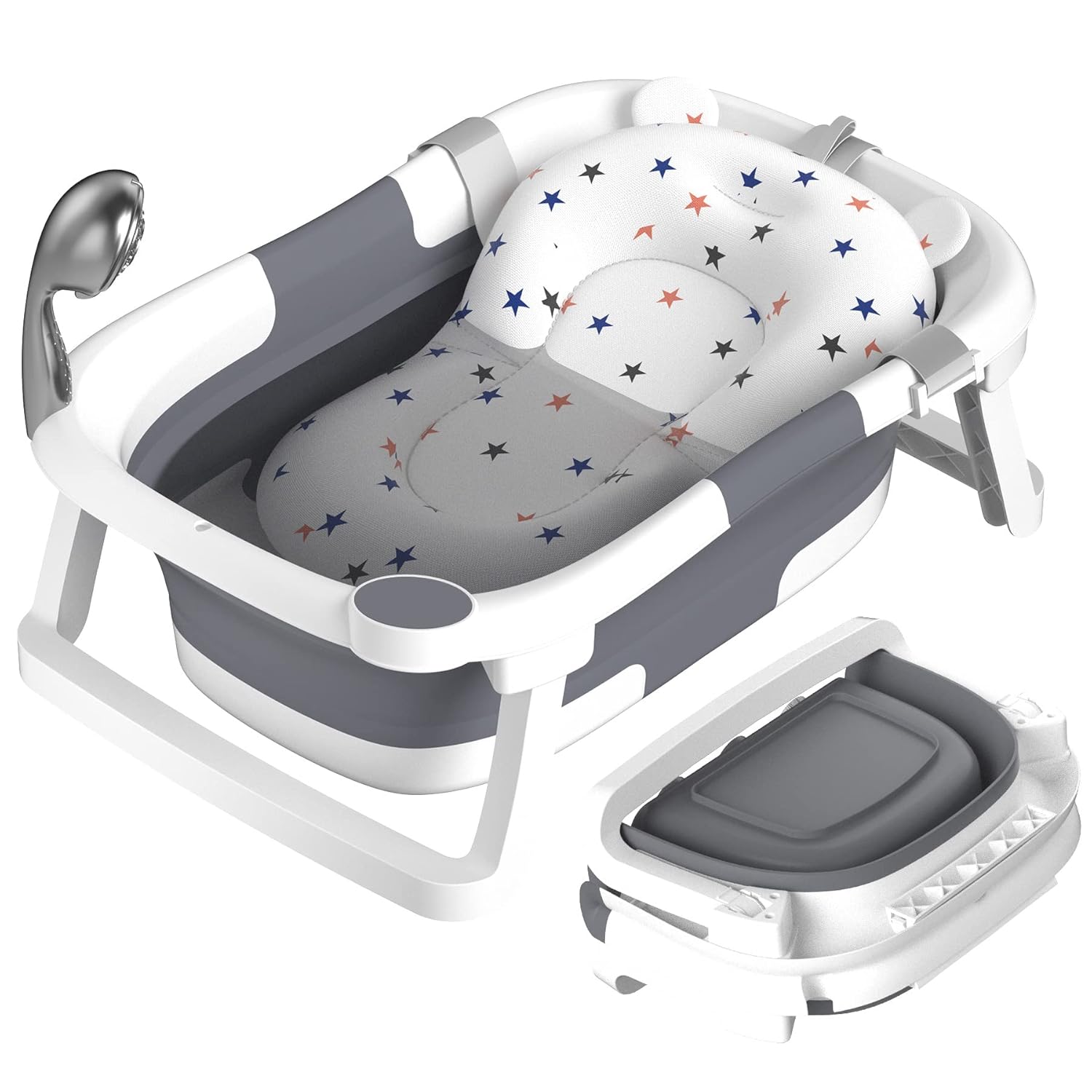 RABB 1ST 1st Baby Badewanne faltbar grau – tragbare Babywanne mit rutschfester Matte und Ablassloch