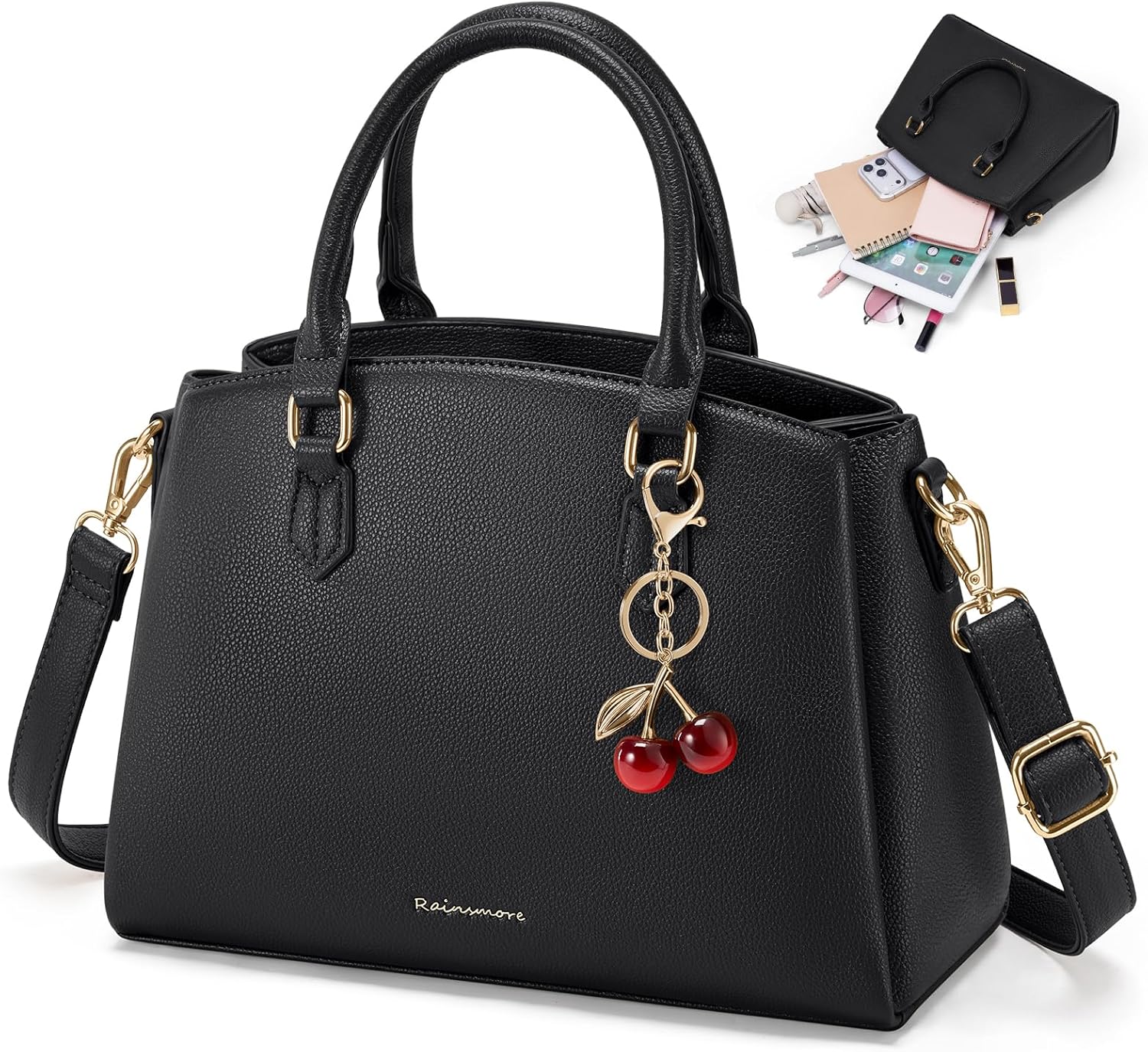RAINSMORE Handtasche Damen mittelgroß aus PU mit abnehmbarem Schulterriemen – für 11-Zoll-Tablet & Büro (schwarz)