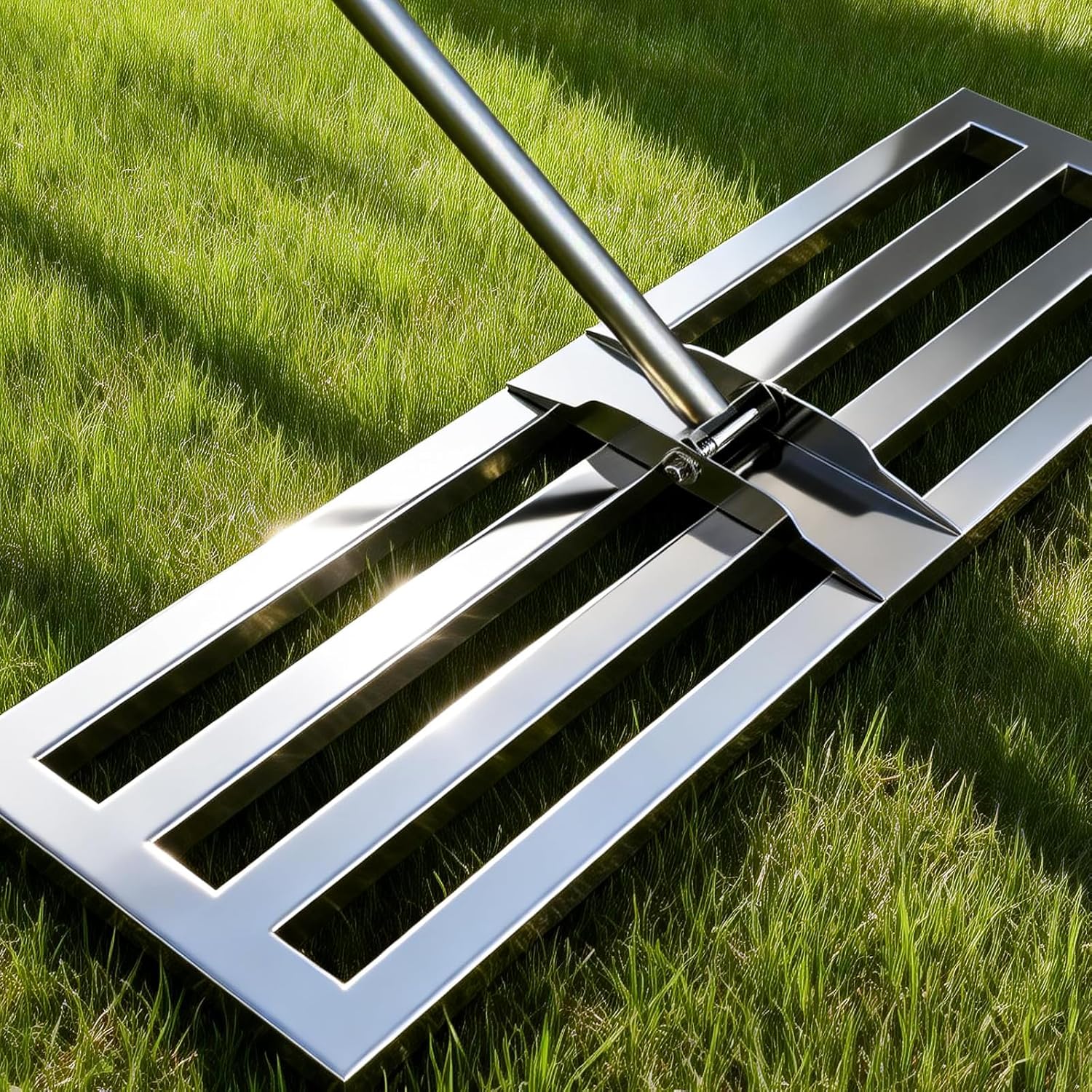 Zusätzlich setzt das Modell auf eine robuste Edelstahlbasis aus 304. Laut Beschreibung hilft die verdickte Basis dabei, den Boden mit weniger Kraftaufwand zu ebnen. Auch praktisch: Die Achsenverbindung ist verschraubt und soll für zusätzliche Stabilität sorgen, während das gleichmäßig verteilte Gewicht dafür ausgelegt ist, dass der Rechen während der Nutzung nicht so leicht umkippt oder sich zu schwer anfühlt.