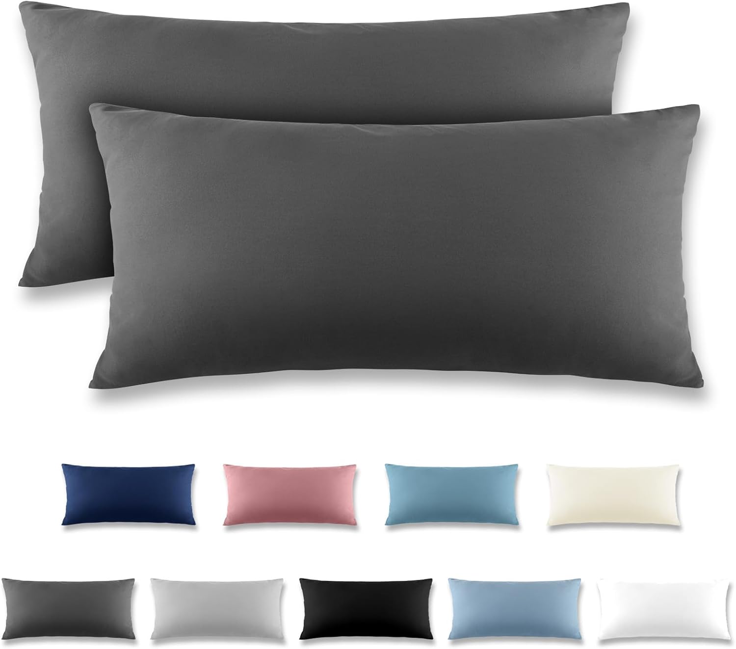 REDKEY Kissenbezug 40x80 cm (2er-Set) mit Reißverschluss – gebürstete Mikrofaserhülle in Anthrazit