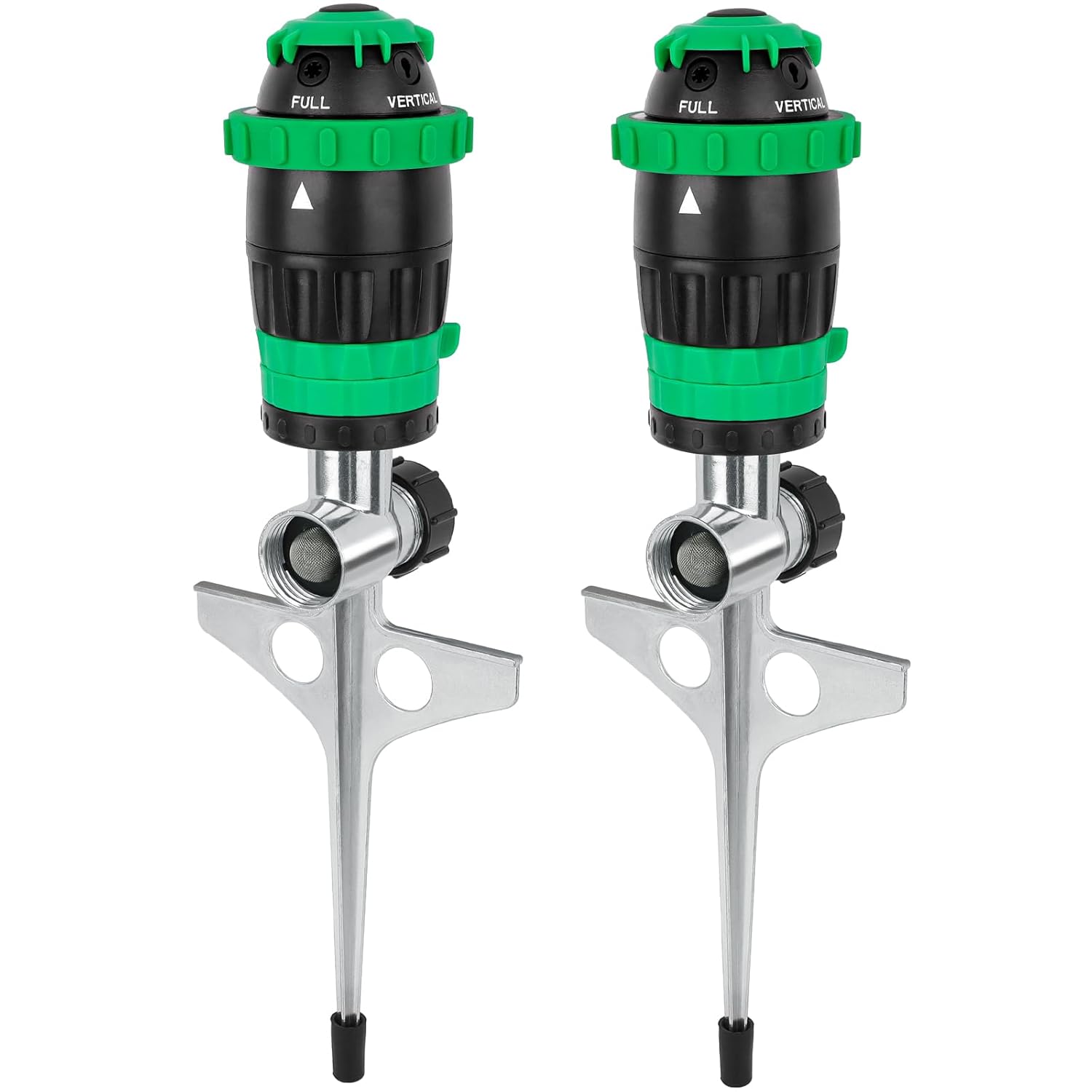 RESTMO Getriebe-Sprinkler 2er-Set mit Metallspike-Basis – 15 m Reichweite, 180 m² Abdeckung, 5 Sprühmuster
