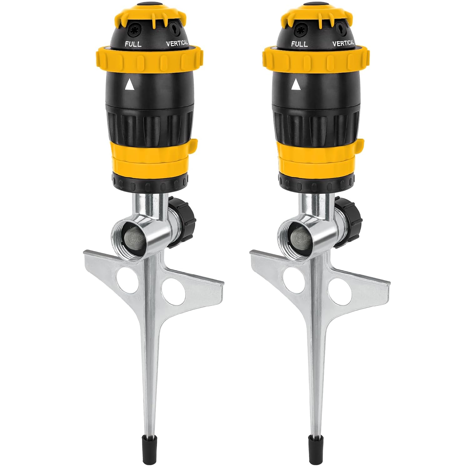 - RESTMO Getriebe-Sprinkler 2er-Set mit Metallspike-Basis – 15 m Reichweite, 180 m² Abdeckung, 5 Sprühmuster
