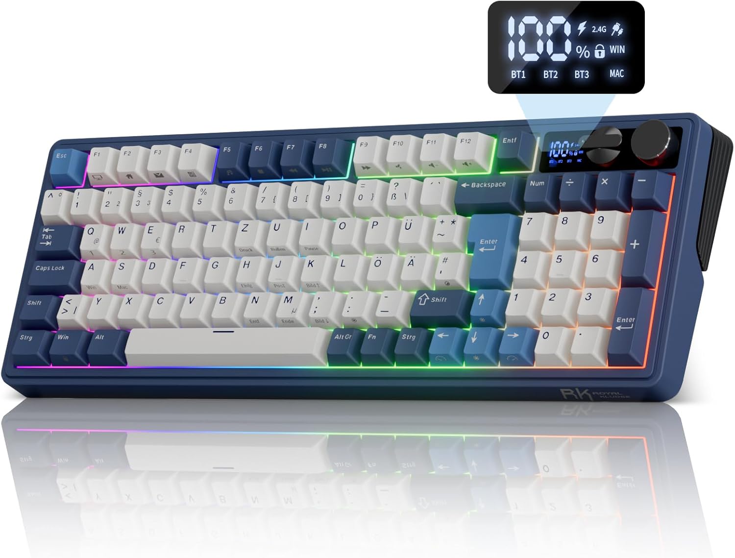 - RK ROYAL KLUDGE S98 DE mechanische Tastatur mit Smart-Display & Knopf (98 Tasten, Hot-Swap, Top Mount, BT/2.4G/USB-C)