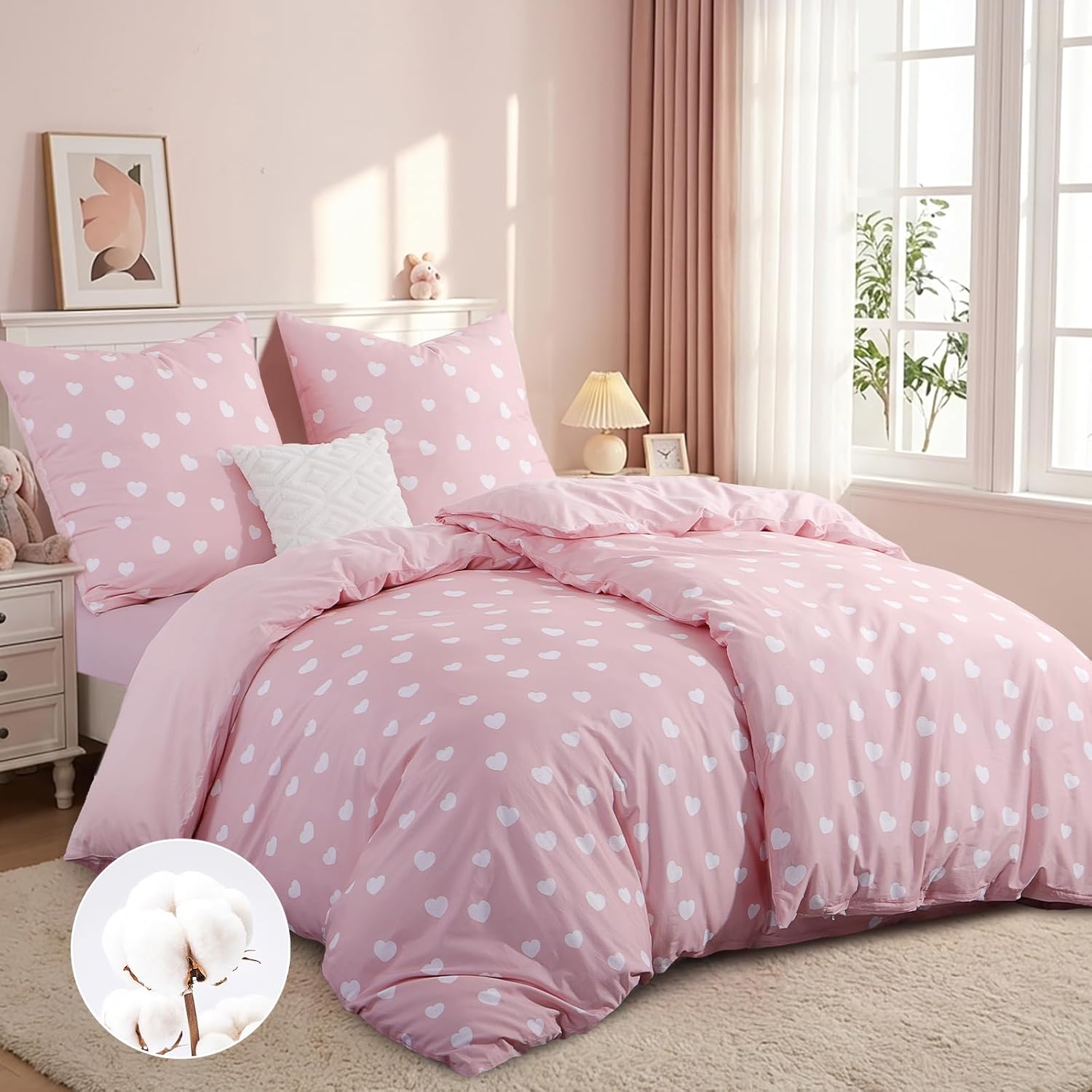 - Name: RUIKASI Bettwäsche 135x200 Baumwolle 4teilig Rosa – Baumwollbettwäsche 135 x 200 4tlg mit Herzen Muster