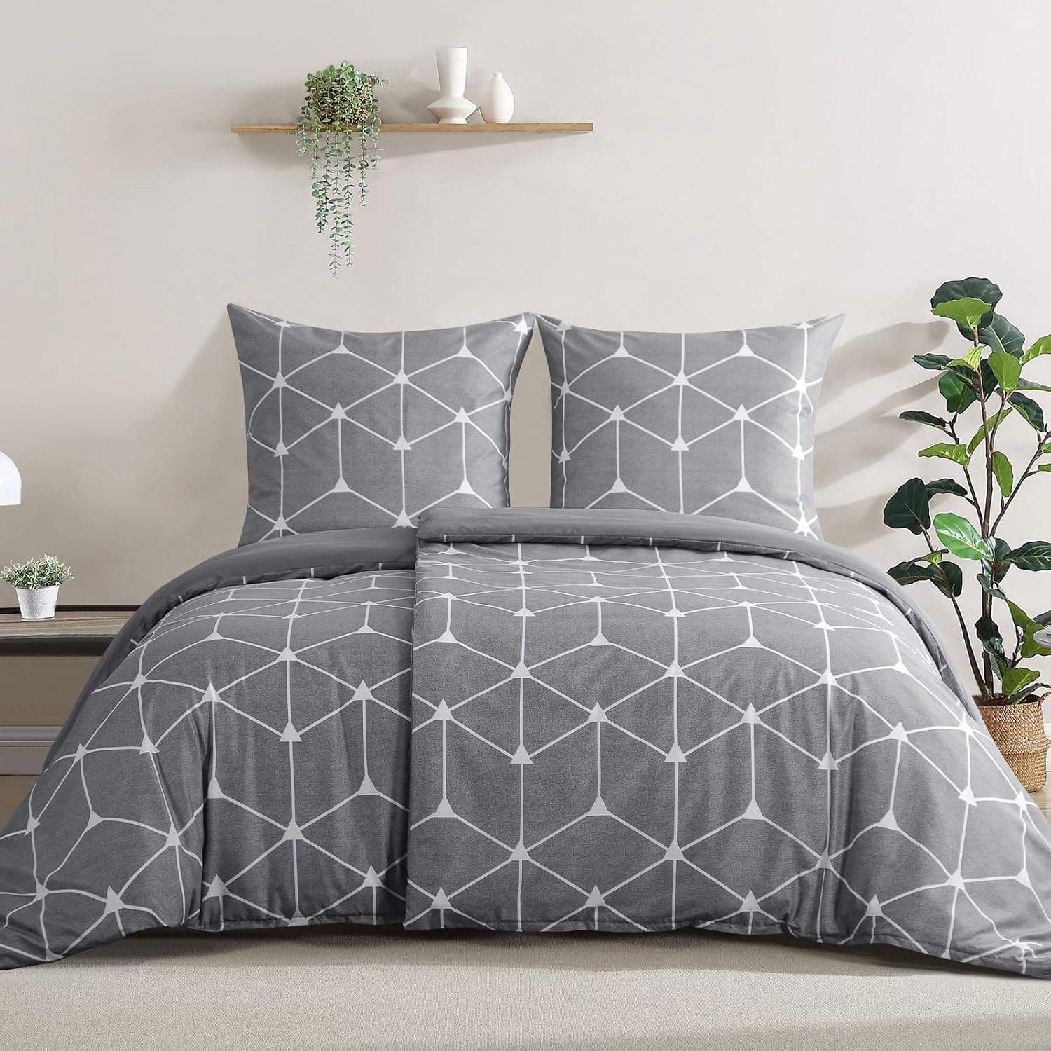 - Bedsure Bettwäsche-Set 155x220 cm aus Baumwolle grau (3-teilig, mit 2 Kissenbezügen 80x80 cm, Wendebettwäsche)