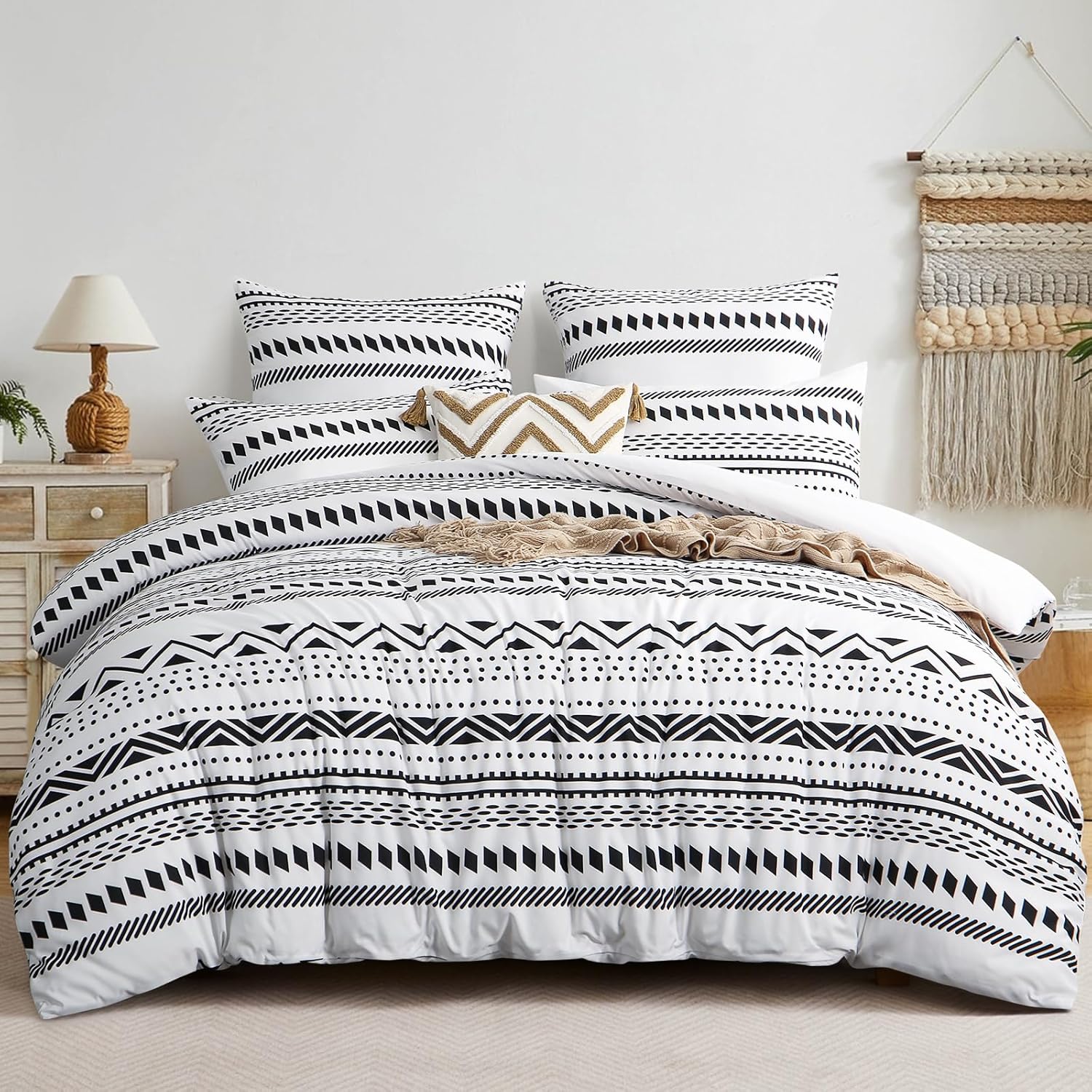 - RUIKASI Bettwäsche 200x220 aus Baumwolle (3-teilig) Anthrazit mit geometrischem Muster