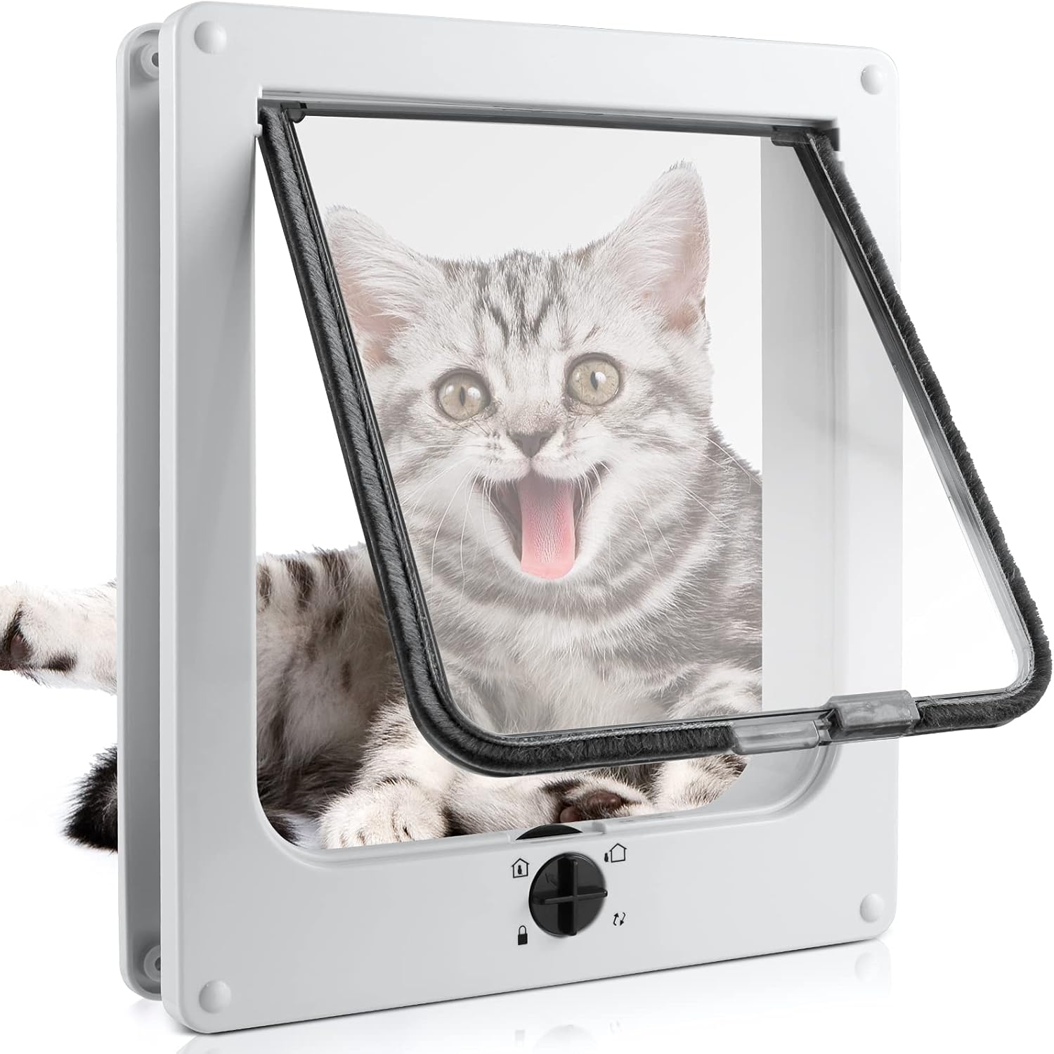 - Typ: Haustierklappe mit 4-Wege-Verschluss (nur rein / nur raus / offen / gesperrt)
