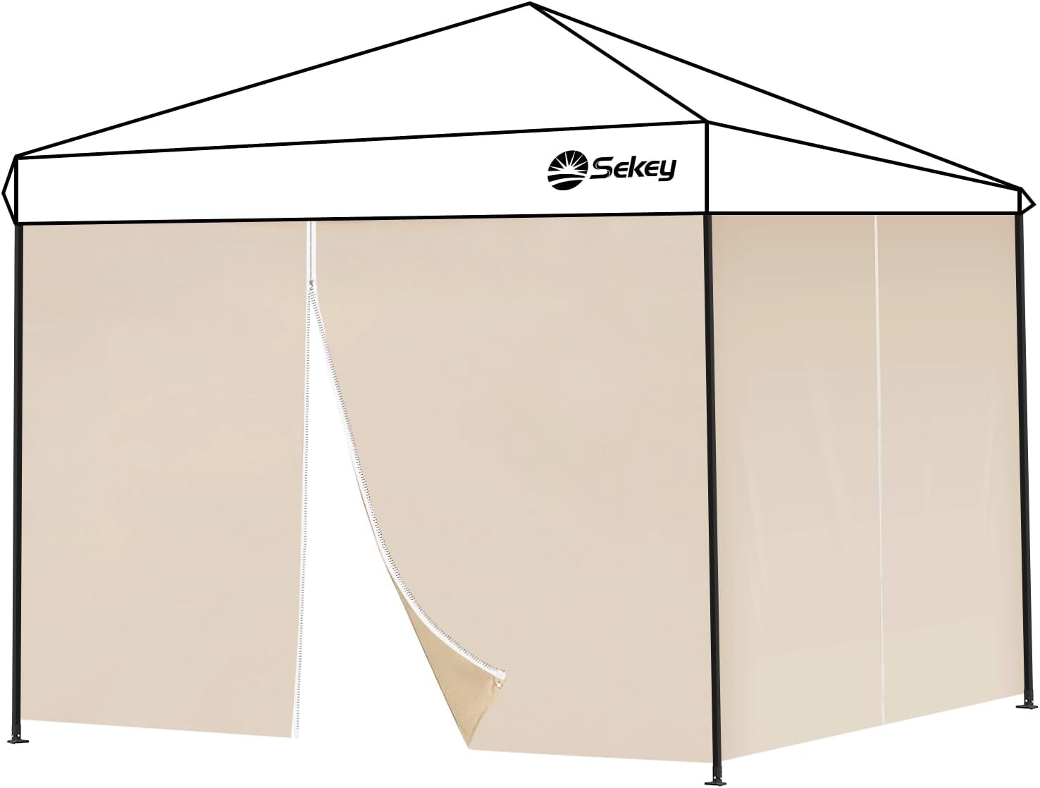 Sekey 2x Seitenwände für Pavillon 3x3 m – wasserdicht, winterfest, mit Fenster und Tür (Khaki)
